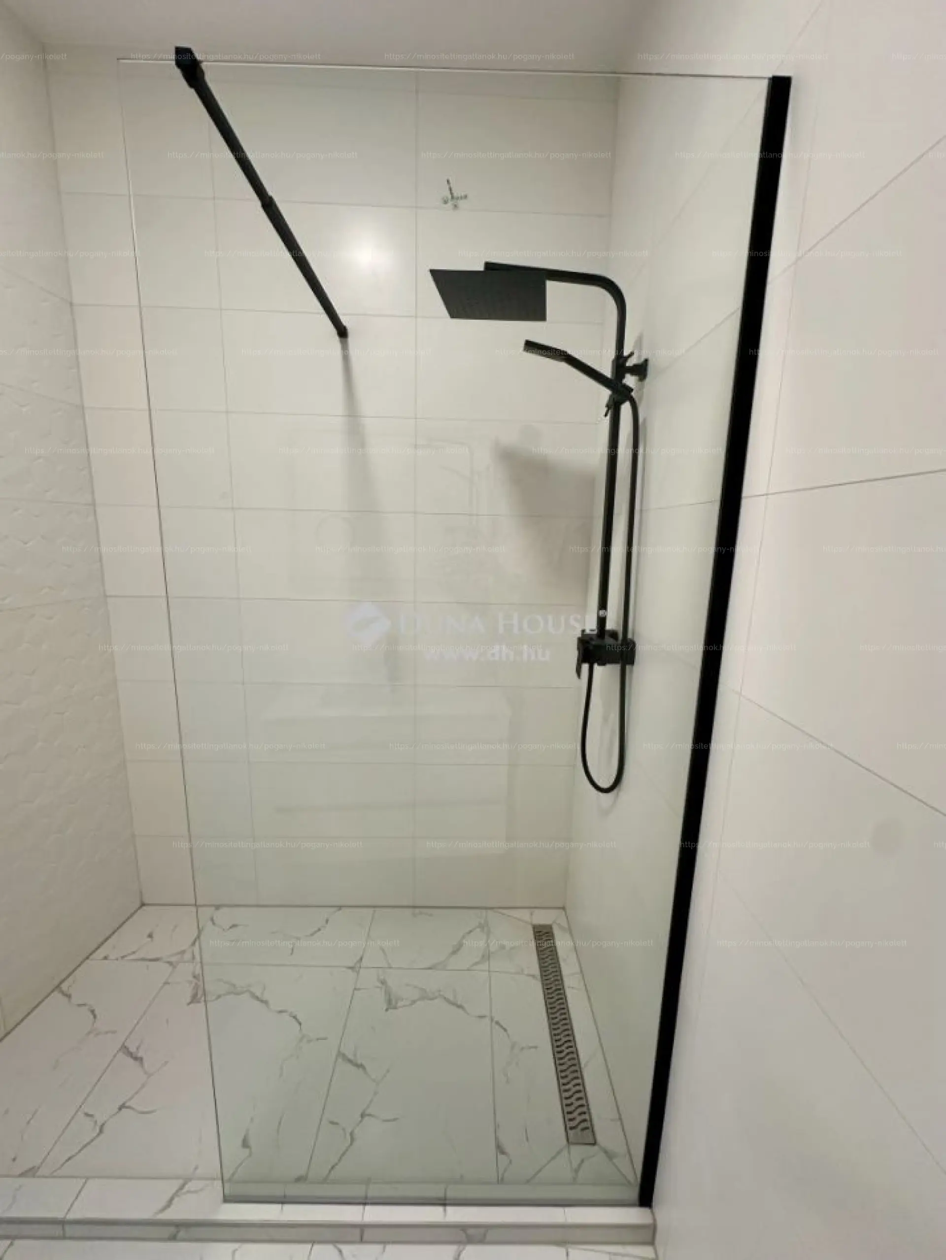 - Parketta a szobákban, márványhatású burkolat a közös terekben