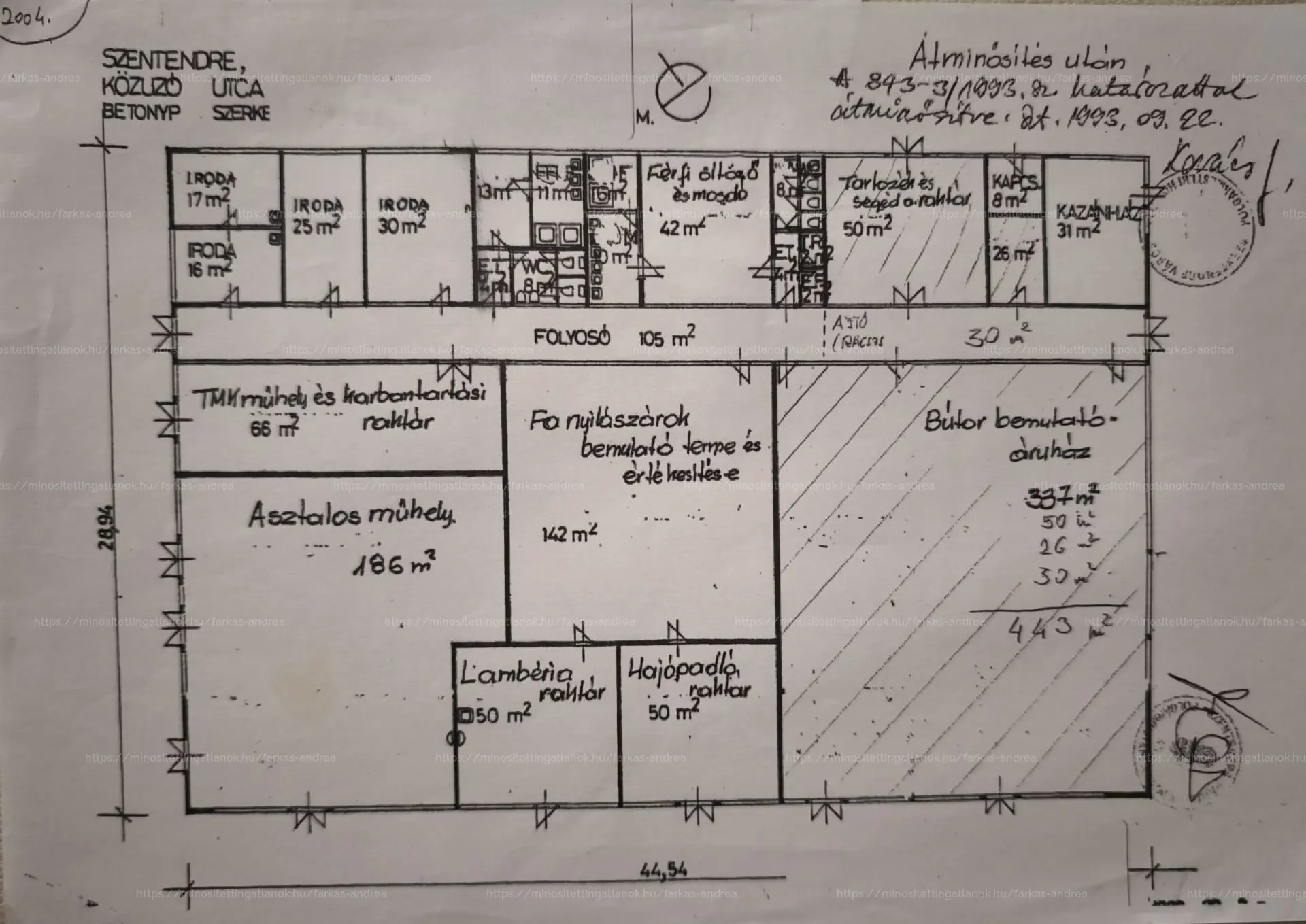 A felépítmény szendvicspanel 915m2 nagyságú és bérlők használják.