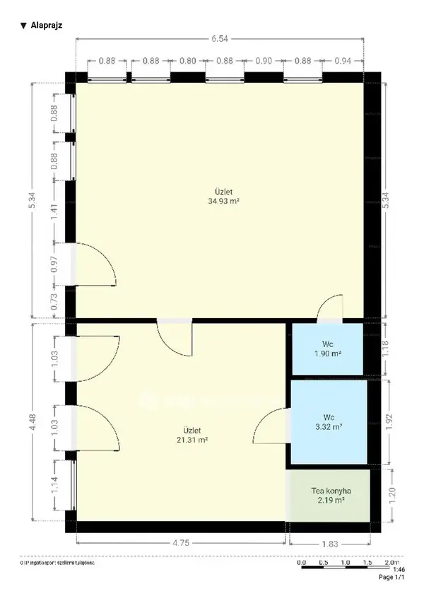 Az INGATLAN jelenleg két ÖNÁLLÓ üzlethelyiség ÖSSZENYITÁSÁVAL lett kialakítva, a KÉT KÜLÖN BEJÁRAT megmaradásával, ezért IGÉNY SZERINT VISSZAOSZTHATÓ két különálló egységre. Ez a RUGALMAS térelosztás lehetőséget teremt TÖBBFÉLE FELHASZNÁLÁSRA: üzlet, szolgáltató pont, iroda, vagy bármilyen ügyfélforgalmas TEVÉKENYSÉG számára ideális. KÖLTSÉGHATÉKONY ÜZEMELTETÉS: Az üzlet minden közművel ÖNÁLLÓAN rendelkezik (víz-, gáz-, villanyóra), a fűtés MODERN gáz cirkó kazánnal, radiátoros hőleadással működik. Kiemelendő, hogy az ingatlan TELJESEN AKADÁLYMENTES: akadálymentes bejárat, MOSDÓ/WC, dolgozói és TEAKONYHA kialakítás adott így az ÁNTSZ előírások is biztosítottak.