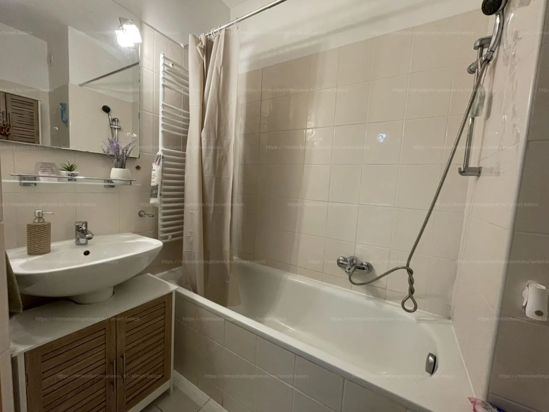 - A lakás beosztása: 1 nappali + 2 hálószoba, Fürdőszoba/WC és külön WC kézmosóval