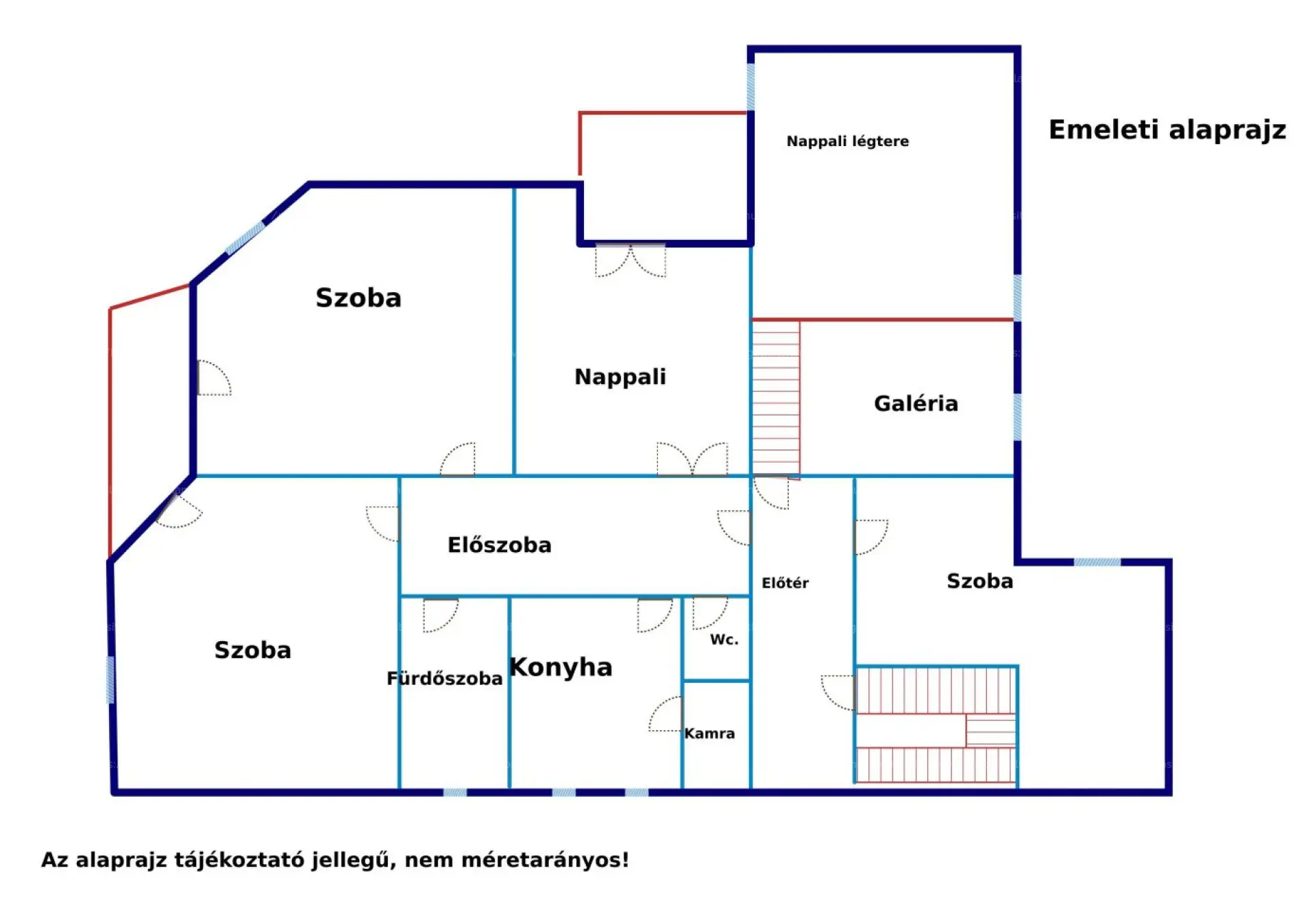 - 4 szoba, nappali-galéria, előszoba-közlekedő, konyha, kamra, fürdő Wc-vel, külön Wc,