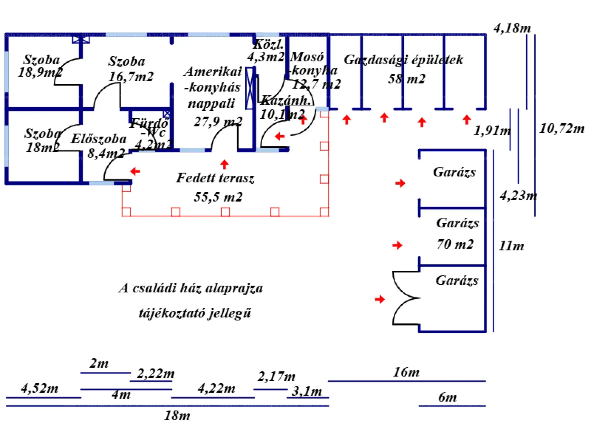 Az 1970-es években épült szabadon álló családi ház vegyes falazattal, stukatoros szigetelt és álmennyezettel ellátott födémmel, fa tetőszerkezeten égetett cserép- és lemezborítással készült, körben csatornával ellátott. A homlokzat átlagos állapotú, festett és kőporozott. A külső nyílászárók műanyagra cseréltek, redőnnyel és szúnyoghálóval ellátottak, a belsők jó állapotú fa szerkezetűek. Az ingatlan egy amerikai-konyhás nappalival, három szobával, egy előszobával, egy fürdőszoba-WC helyiséggel, egy közlekedővel, egy kazánházzal, egy mosókonyhával és egy 55 m2 nagyságú fedett terasszal rendelkezik. A telken további melléképületek is helyet kaptak, melyből 60 m2 gazdasági épület létesült, valamint felépült egy részben zárható, három egységből álló, összesen 70 m2 nagyságú lemezgarázs is. A ház helyiségei parketta-, hajópadló- és járólap borítást kaptak. Az összközműves ingatlanban az egyfázisú 25 Amper és a 10 Amper vezérelt villany cserélt vezetékekkel, Fi relével és kismegszakítókkal, a vezetékes víz, a csatorna és a gáz rendelkezésre állnak. Az otthon melegéről és melegvíz ellátásáról Baxi kombi gázkazán gondoskodik radiátoros hőleadással, alternatív megoldásként gravitációs vegyestüzelésű kazán, valamint három kémény is rendelkezésre áll. Igény esetén a meleg víz-ellátás Hajdú villanybojlerről is megoldható. Az udvar körben bekerített, rendezett, több részre osztott, gépjárművek számára az aszfaltozott útról kapubejáró biztosított. A hirdetés tájékoztató jellegű, az ingatlanról pontos adatokat a megtekintést követően a tulajdonos által elmondottak alapján tudunk garantálni! Az ingatlan nem lakott, birtokba adás megegyezés szerint lehetséges. A vásárlás finanszírozásában az OTP kedvezőbb kamatozású hitelkonstrukcióival tudunk segíteni. Az adásvételi szerződés lebonyolításához korrekt ügyvédi közreműködést tudunk ajánlani. Amennyiben felkeltettem érdeklődését, hívjon bizalommal! Eladó ingatlanokat keresünk meglévő és külföldi partnereink számára!