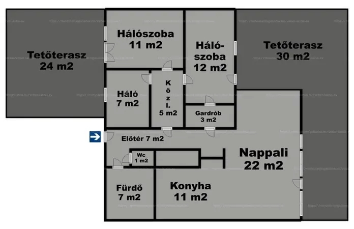 - kettő tetőterasszal (27 és 30 m2)