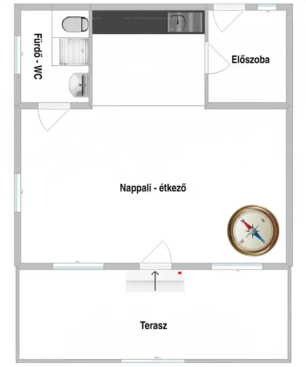 -Hátsó előterem: A telek hátsó felé vezet az ajtó.