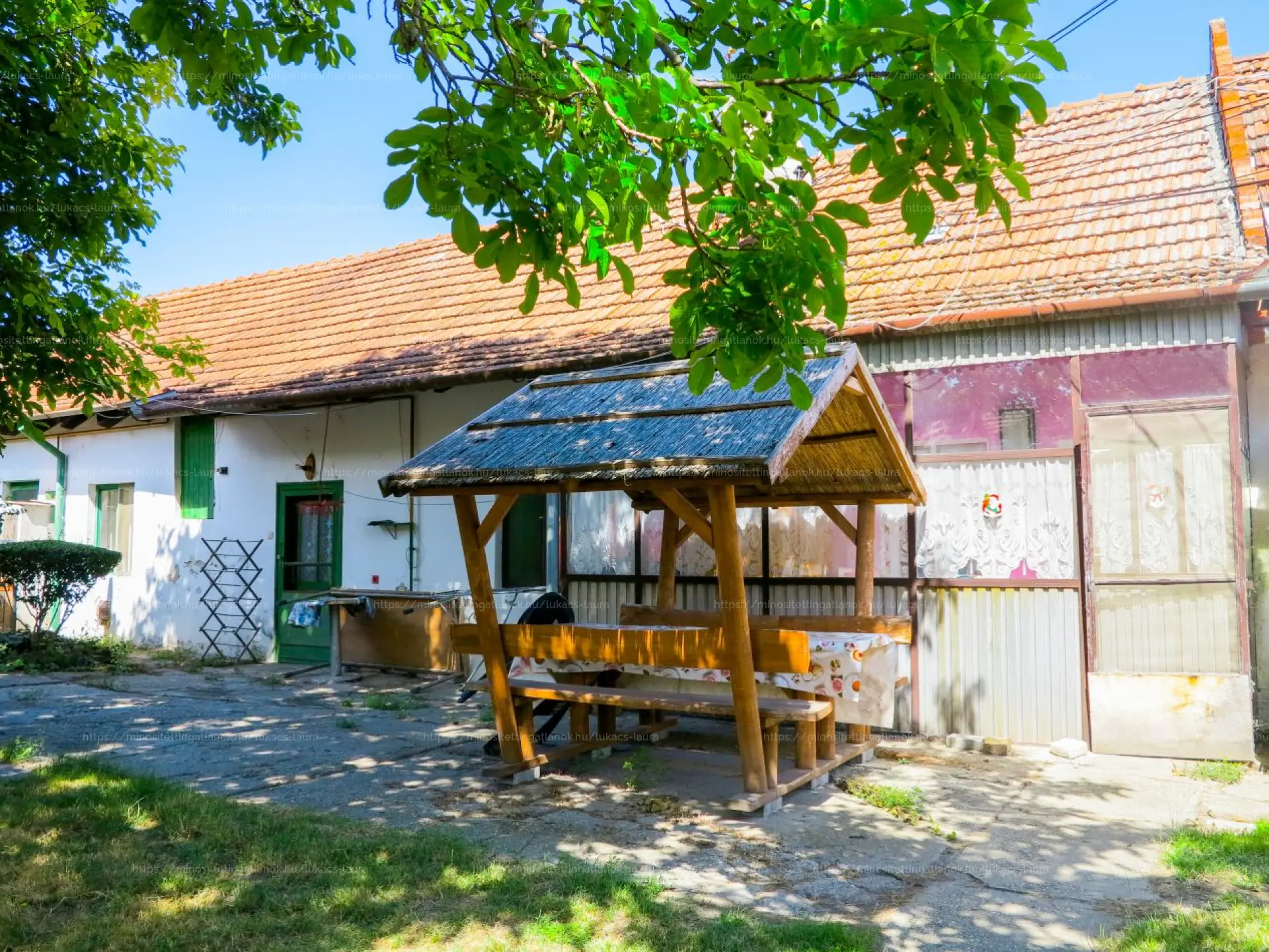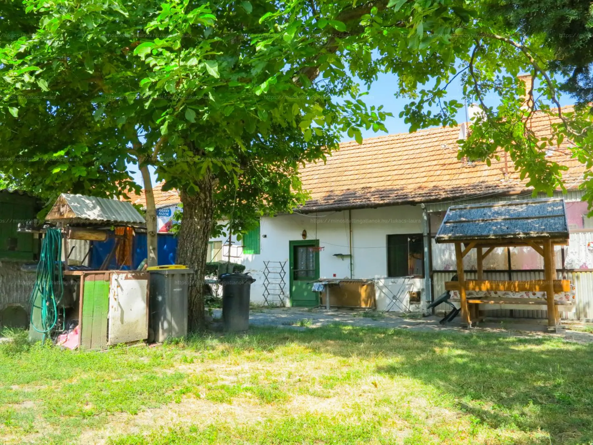 - melléképület (33 m2): konyha, fürdőszoba, kamra, műhely