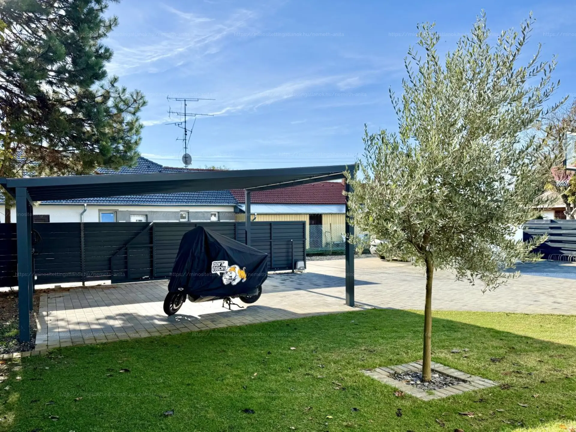 - nyitott és fedett terasz, kisház, kerti tusoló