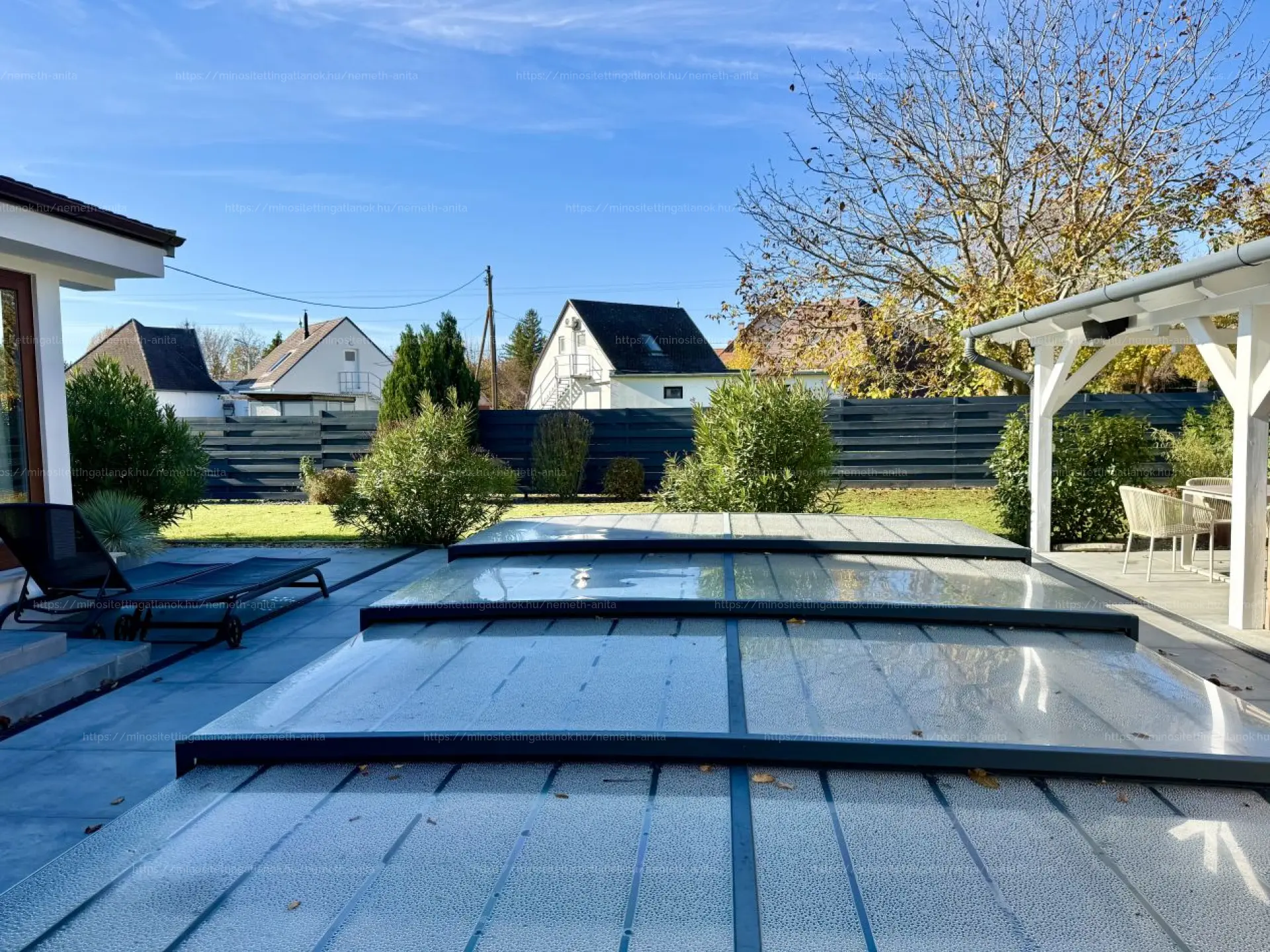 - fedett, hőszivattyúval fűthető medence
