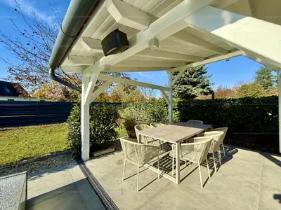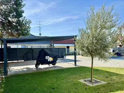 - nyitott és fedett terasz, kisház, kerti tusoló