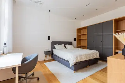 Az 53 nm-es amerikai konyhás nappali mellet a többi helyiség is rendkívül tágas, kényelmes, praktikusan kialakított. 3 hálószoba, 2 fürdőszoba, egy kézmosóval ellátott toalett, gardrób, háztartási helyiség és előszoba áll rendelkezésünkre.