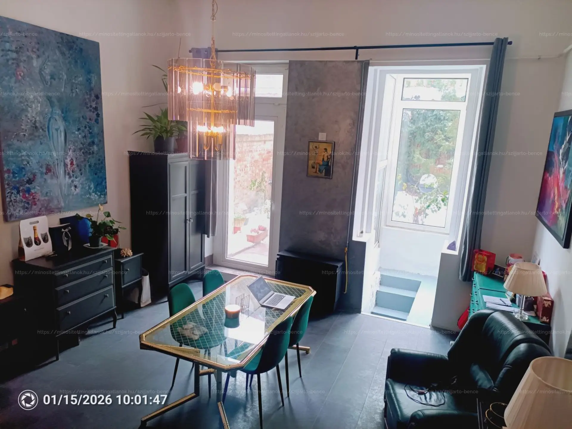 Eladó egy bruttó 110 m²-es (nettó 52 m² alapterületű, galériával és 50 m² szuterénnel), különleges adottságokkal rendelkező ingatlan, amelyhez egy 42 m²-es saját kert is tartozik a VII. kerület szívében. Saját kertes lakás a belvárosban rendkívül ritka!Főbb Jellemzők és Adottságok:Nagyszerű lokáció: Közvetlenül az Állatorvosi Egyetemmel szemben, biztosan értékálló befektetés. Könnyen kiadható, a kapuban 3 kávézó is található. Szuper központi, mégis csendes és biztonságos környezet a lakás fekvésének köszönhetően.Privát oázis a kertben: Különleges, 42 m²-es, intim kertrész (ősfás, ciprusokkal és pálmákkal határolt), amiben senki sem zavarja. Tökéletes helyszín grillezéshez, reggeli kávéhoz, nyáron akár jakuzzi elhelyezésére is. BBQ lehetőség adott.Nagy belmagasság: A földszinti részen 4,1 méteres belmagasság biztosít nagy belső teret, és lehetőséget ad akár egy extra szint kialakítására is a meglévő 2 szint mellett.Extrákkal kialakított szuterén: A nappaliból nyíló, 50 m²-es, légkondicionált pinceszint igazi kikapcsolódást nyújt. Itt található a 3 méteres házimozi kijelző, biliárd asztal és minőségi Andante Ferrari piros sarok kanapé. A szuterén jogi helyzete rendezett, a lakás helyrajzi száma rendelkezik a területre vonatkozó határozatlan idejű bérleti joggal, mely közgyűlésen elfogadott és engedélyezett. Alkalmas akár moziteremnek, hangulatos helyszín lehet akár kártyapartikhoz, vagy zenei próbateremnek, mivel a hangokat szinte teljesen elnyeli a vastag tégla födém.Átgondolt kialakítás: Sok energiát és pénzt fektettek az ingatlanba, minden jogilag és hiteles papírokkal alátámasztott(neves Budai mérnöki és statikai cég tervei alapján kialakított).Műszaki és Esztétikai Paraméterek:Állapot: KorszerűsítettNyílászárók: Minden nyílászáró új, műanyagra cserélve, méretre gyártott teli üveges bejárati ajtóval. A kerti ablakok/ajtók 3 méter magasak, rendkívül fényes nappali.Minőségi anyagok: Gránit mosogató, réz csapok, zöld márvány mosdó.Fűtés/Hűtés: Ariston bojlerek, hűtő-fűtő klíma a szuterénben, elszívó rendszerrel (2x 100m³ / óra).Helyiségek Részletesen:Konyha: 11,5 m², 4,1m belmagasság, hőlégkeveréses sütő, gázrózsás főzőlap, gránit mosogató.Nappali: 30 m², nagyon világos, jól variálható (akár plusz szoba is kialakítható).Galéria: 9 m², teljes értékű magasság.Fürdőszoba: 5,2 m².Gardrób: 6 m².Szuterén: 50 m² (Házimozi, biliárd).Kert: 42 m²Ez az otthon egy igazán különleges érzést ad – egyediségét és központi elhelyezkedését tekintve nagyszerű ajánlat.