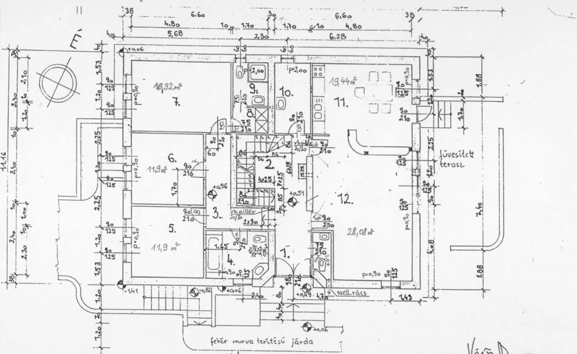 - 38-as Wienerberger téglafalazat, betonfödémmel, bitumenzsindelyes tetőfedéssel