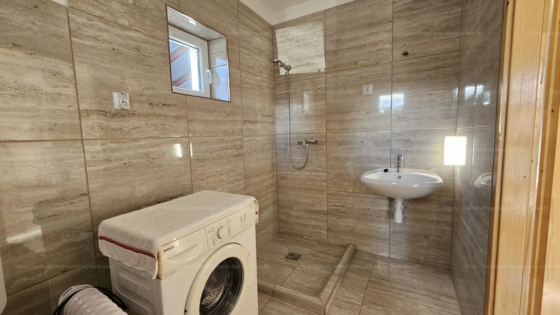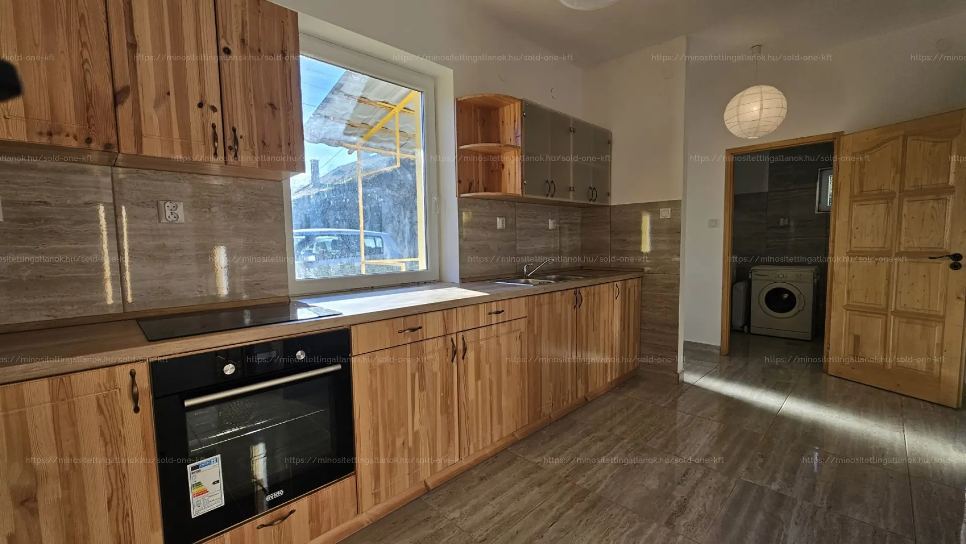 A 55 m²-es lakótér teljes körű felújításon esett át: új, háromrétegű hőszigetelt nyílászárók, egyedi tömör fenyő beltéri ajtók, megújult villany- és vízhálózat, modern elektromos fűtőtestek, valamint fatüzelésű kályha gondoskodik a kellemes hőérzetről. A konyhában egyedileg gyártott fenyő konyhabútor kapott helyet sütővel és főzőlappal.