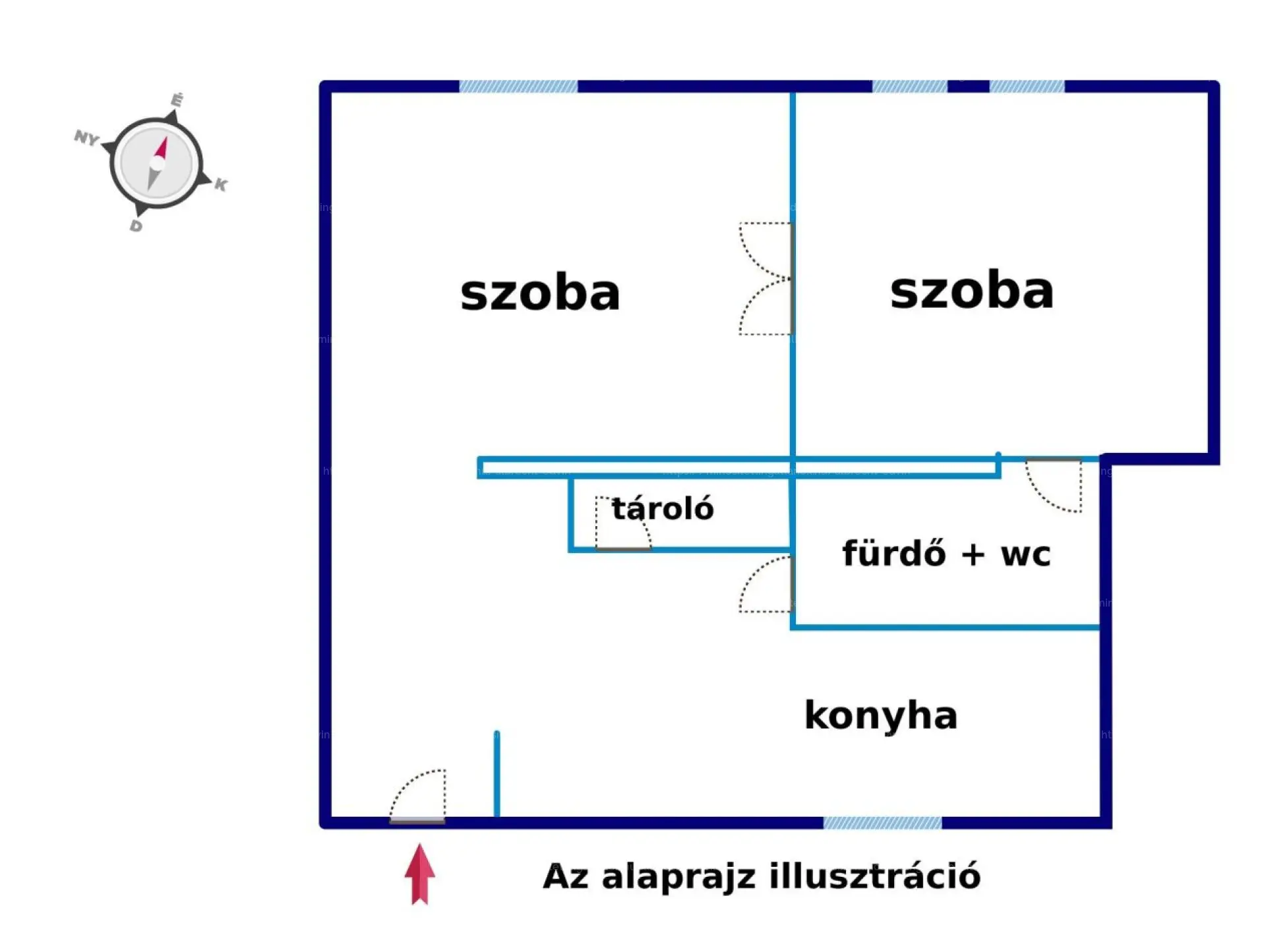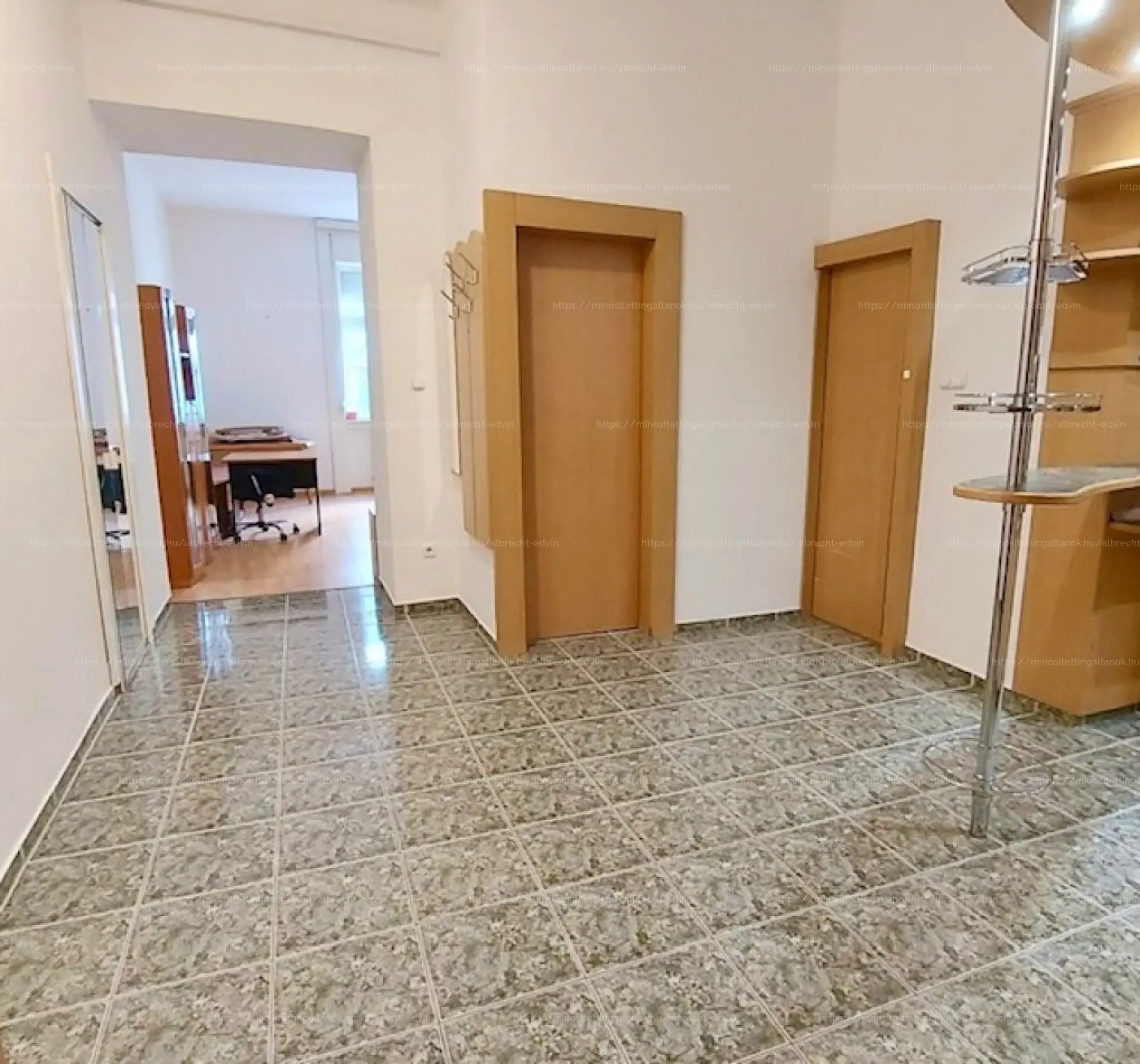 Az ingatlan a tulajdoni lap szerint magasföldszinti, de valójában I. emeletnek megfelelő magasságban helyezkedik el, mivel az épület földszintjén is vannak lakások.