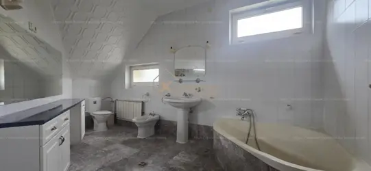 -Tágas, ablakos, kádas fürdőszoba beépített bútorokkal
