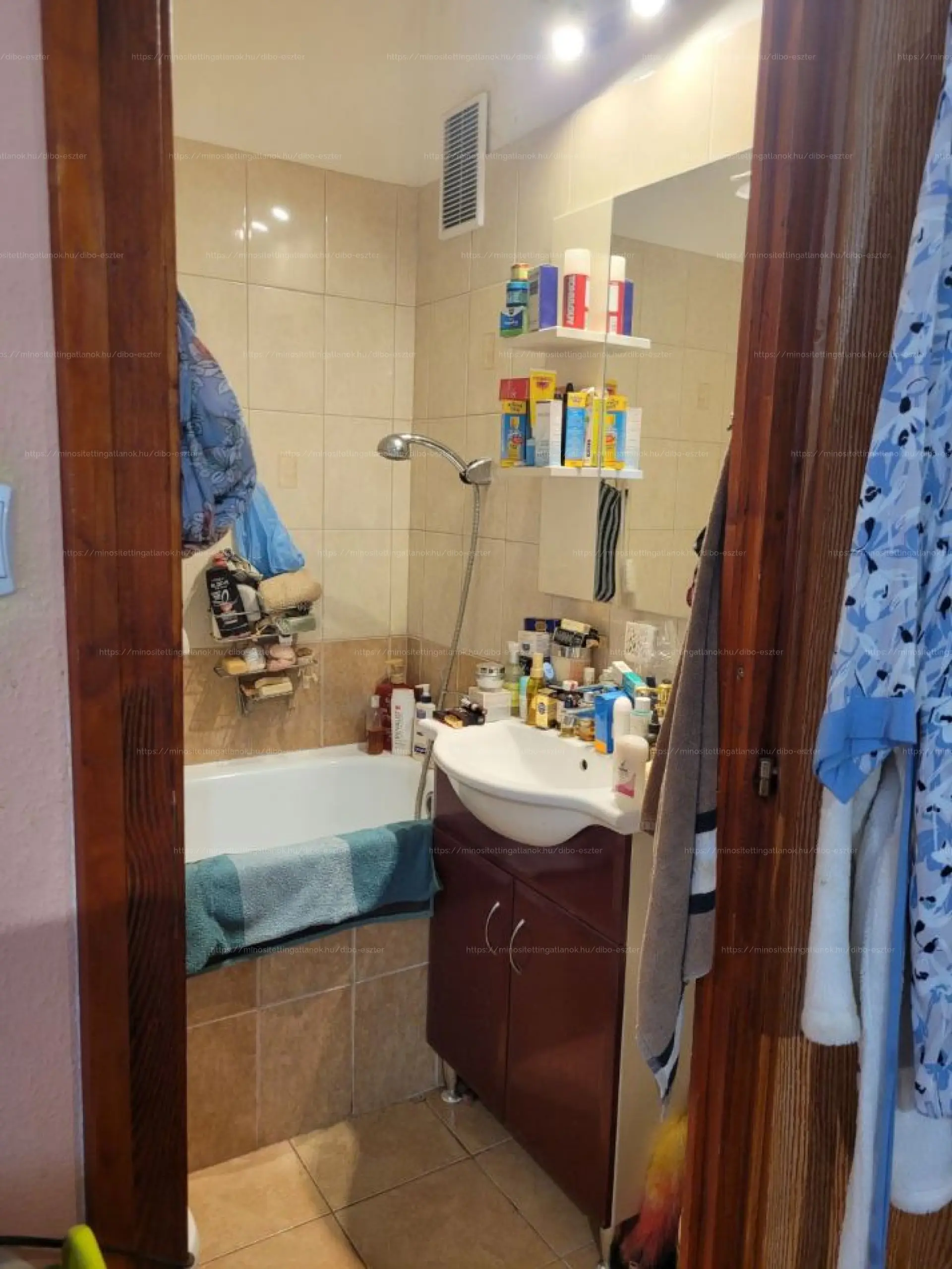 A fürdőszoba és wc külön helységben található. Ezen helyiségeket kivéve a lakás többi része 1 légtérben helyezkedik el, válaszfalak nélkül. Lehetőség lenne másfél szobássá alakítani a lakást.