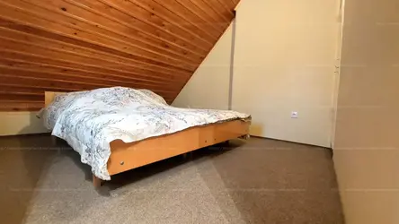 A br. 52/ nettó 43 m2-es, kétszintes, DK fekvésű „kivett hétvégi ház, udvar” besorolású ingatlan Bükfürdőn található, nagyon közel a Gyógyfürdőhöz. A 194 m²-es gondozott telek biztosítja a nyugodt pihenést és kikapcsolódást. A házhoz egy fedett terasz és egy erkély is tartozik, amely kellemes helyszínt nyújt a reggeli kávézáshoz vagy esti borozáshoz. A szerszámok, kerékpárok tárolására egy 7,5m2-es pince/tároló is rendelkezésre áll.