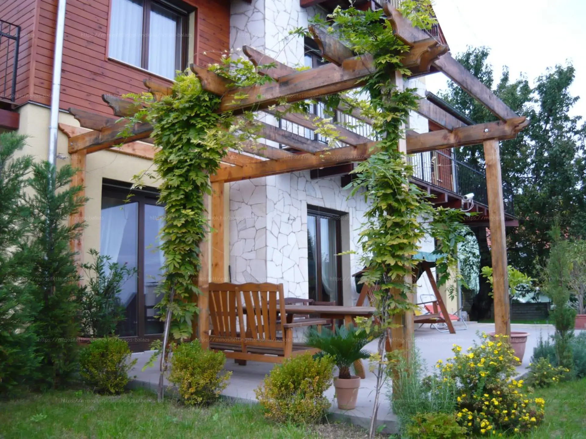 A gondozott, dísznövényekkel beültetett kertet automata öntözőrendszer ápolja. A téli hónapokban a nappali hangulatát fatüzeléses kandalló teszi még meghittebbé, míg a finn- és infraszauna a teljes kikapcsolódás élményét kínálja.