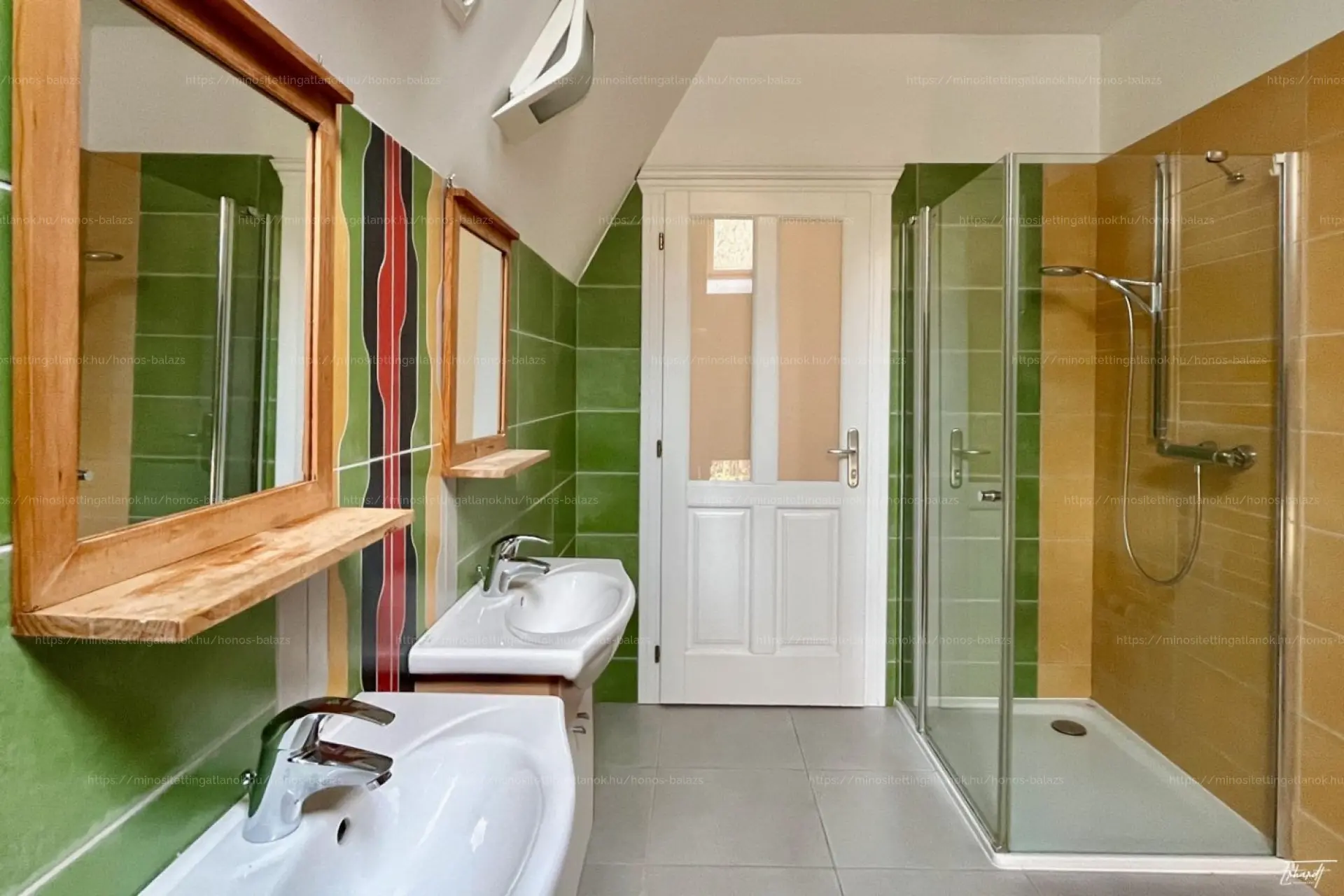 Az épületben két, külön bejárattal kialakított lakás található. Mindkét lakásban tágas, panorámás nappali, részben szeparált konyha, két hálószoba és fürdőszoba szolgálja a lakók kényelmét. A tetőtérben további három hálószoba és egy fürdőszoba biztosítja a nyugodt pihenést.