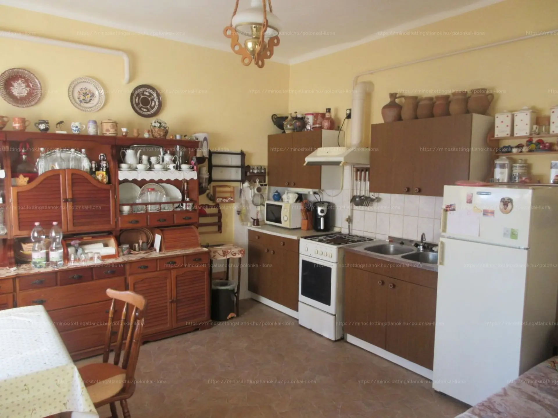 Földszint: Tágas, napfényben úszó konyha, egy kényelmes szoba, nappali, fürdőszoba, külön WC, kamra és előszoba.