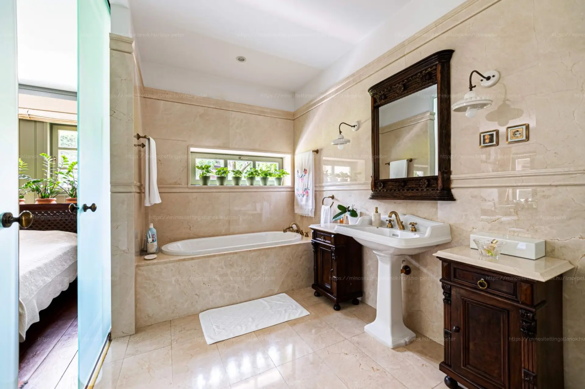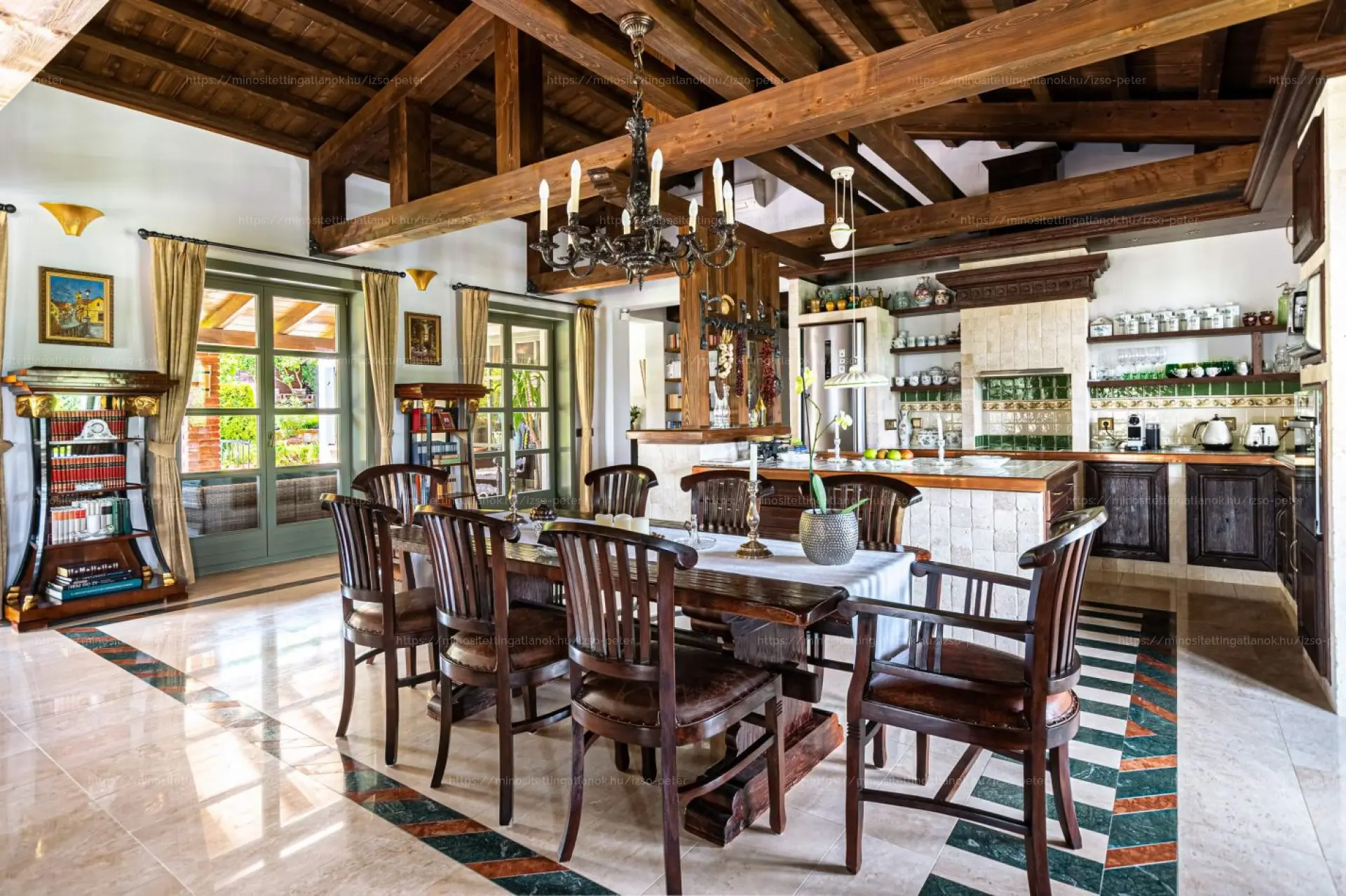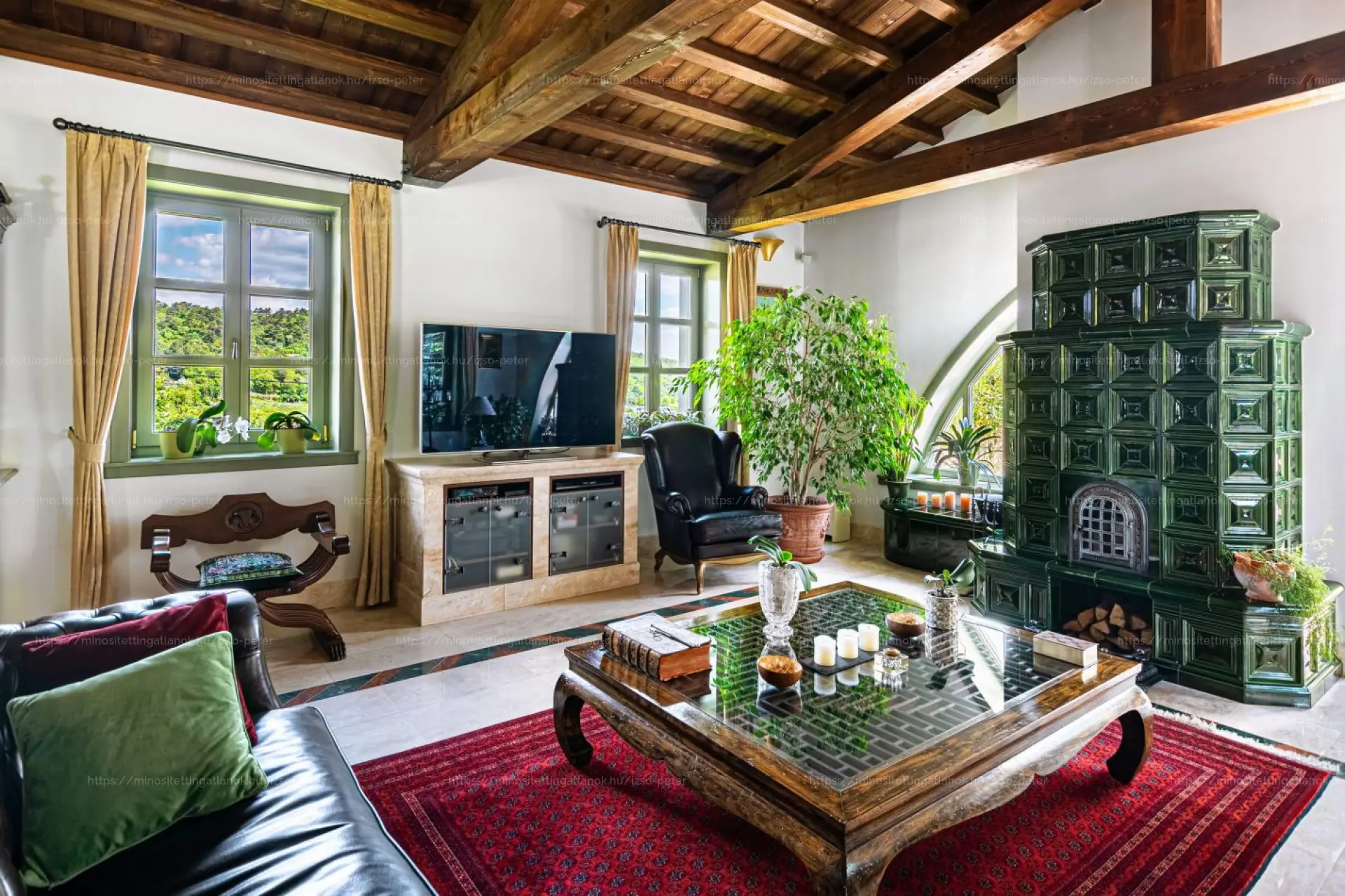 ⭐️Az ingatlanban kizárólag természetes anyagok kerültek felhasználásra: mészkő, márvány, fa. A kőmunkákat a nagy múltú Reneszánsz Kőfaragó Zrt. készítette, akik kiválóan ötvözik a legmodernebb technológiákat, és a kézműves mesterségbeli tudás hagyományainak ápolását. Az eresz kézzel hajlított rézből készült különlegesség.A fűtés gázkazánnal működik, padlófűtéses rásegítéssel.További extrák: kamera,és riasztórendszer , légkondicionáló, öntözőrendszer.