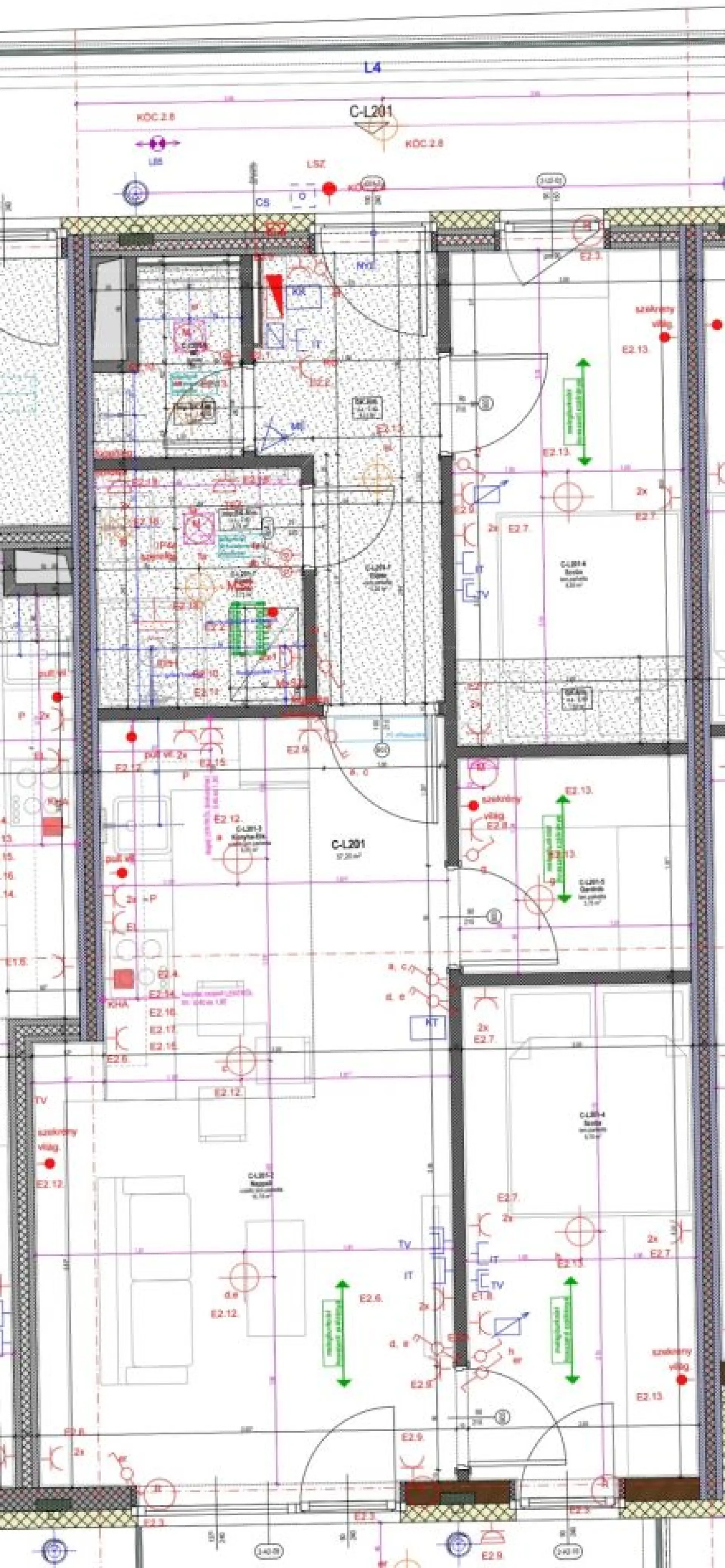 Az épületben korszerű központi levegő-víz hőszivattyú biztosítja a lakások melegvíz ellátását, a megfelelő klímáról a mennyezeti hűtés fűtés gondoskodik.