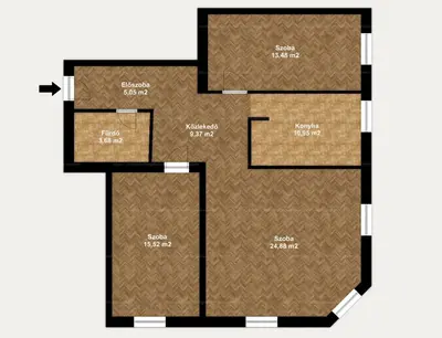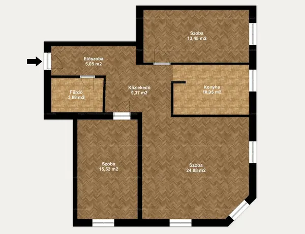 - Jelenleg 3 külön nyíló szoba + konyha + fürdőszoba, de akár 4 szoba is kialakítható!