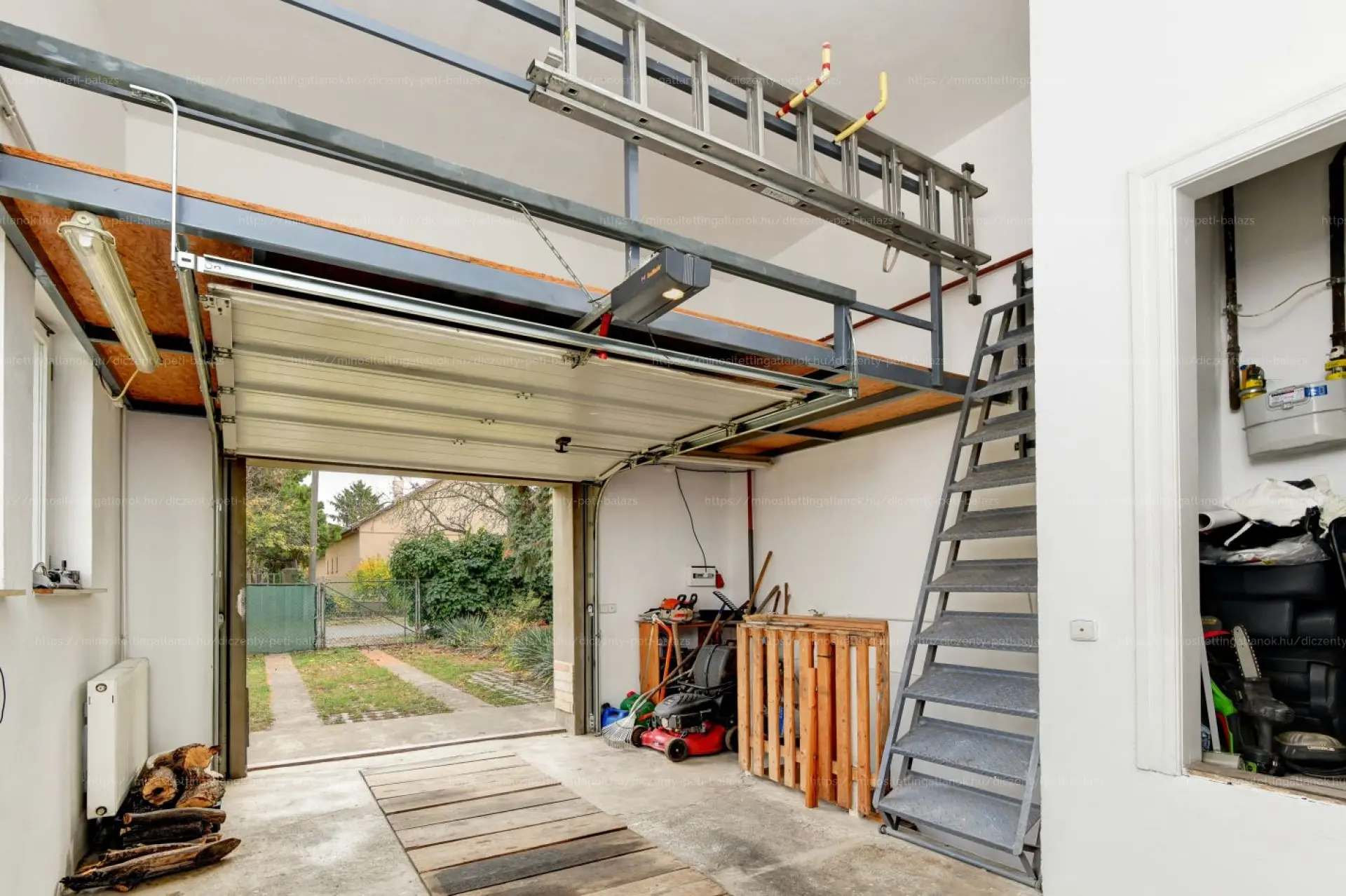 Önálló garázs van hozzá, automatikus garázsajtóval.