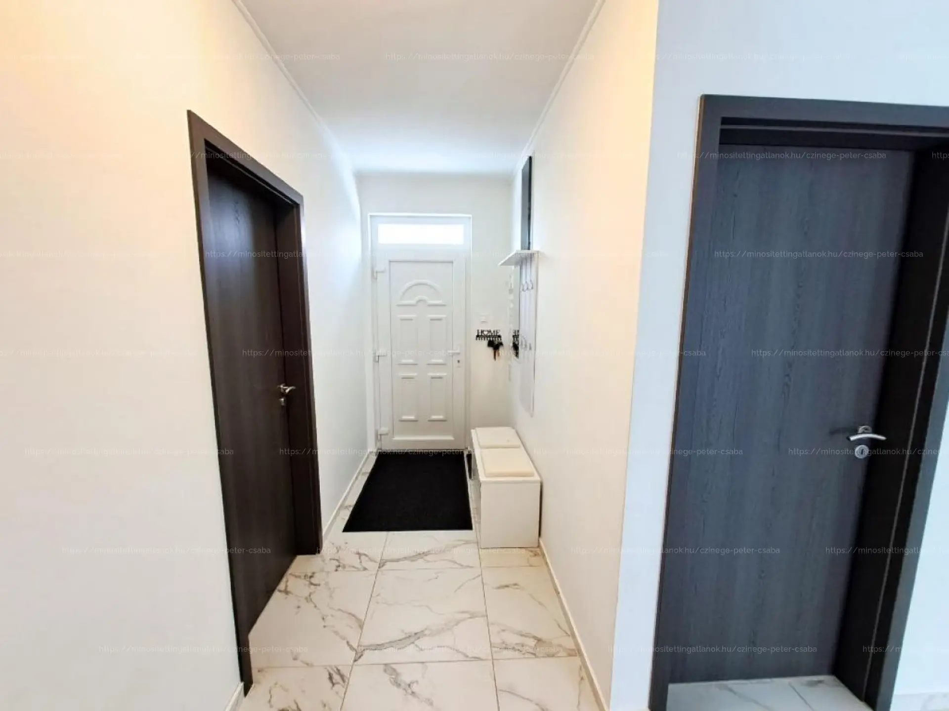 BELTÉR: Minőségi belső ajtók átfogótokos szerkezettel, beépített TV-fal és biztonsági bejárati ajtó.