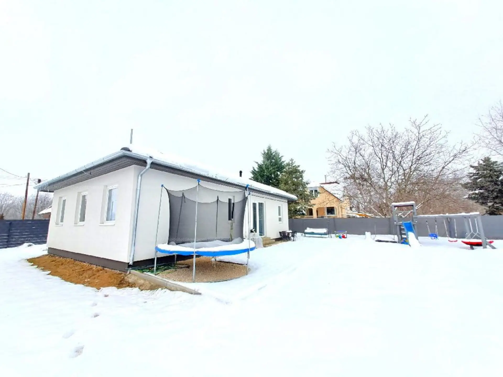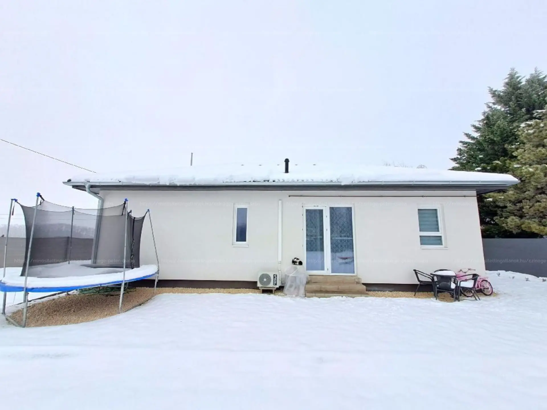 UDVAR: Első fele parkosított, füvesített. A házból kilépve a kavicsburkolattal kialakított hatalmas teraszon kültéri bútorok, étkező, grillező, hinták és pihenőágyak is elférnek. Az udvar lörben kerítéssel és belátásgátlással védett.