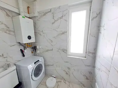 MOSÓKONYHA: Külön helyiség a mosó- és szárítógépnek (WC-vel), így a fürdő megőrzi spa- stílusát.