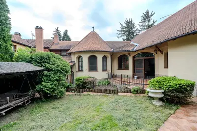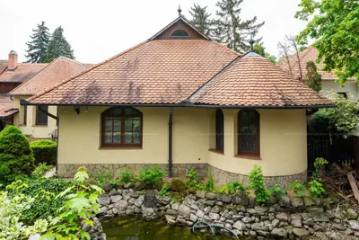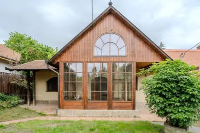 Eladó Leányfalun, a főút zajától mentes mellékutcában, pár perc sétára a fürdőtől, egy igazán különleges, és egyedi tégla építésű földszintes családi ház.
