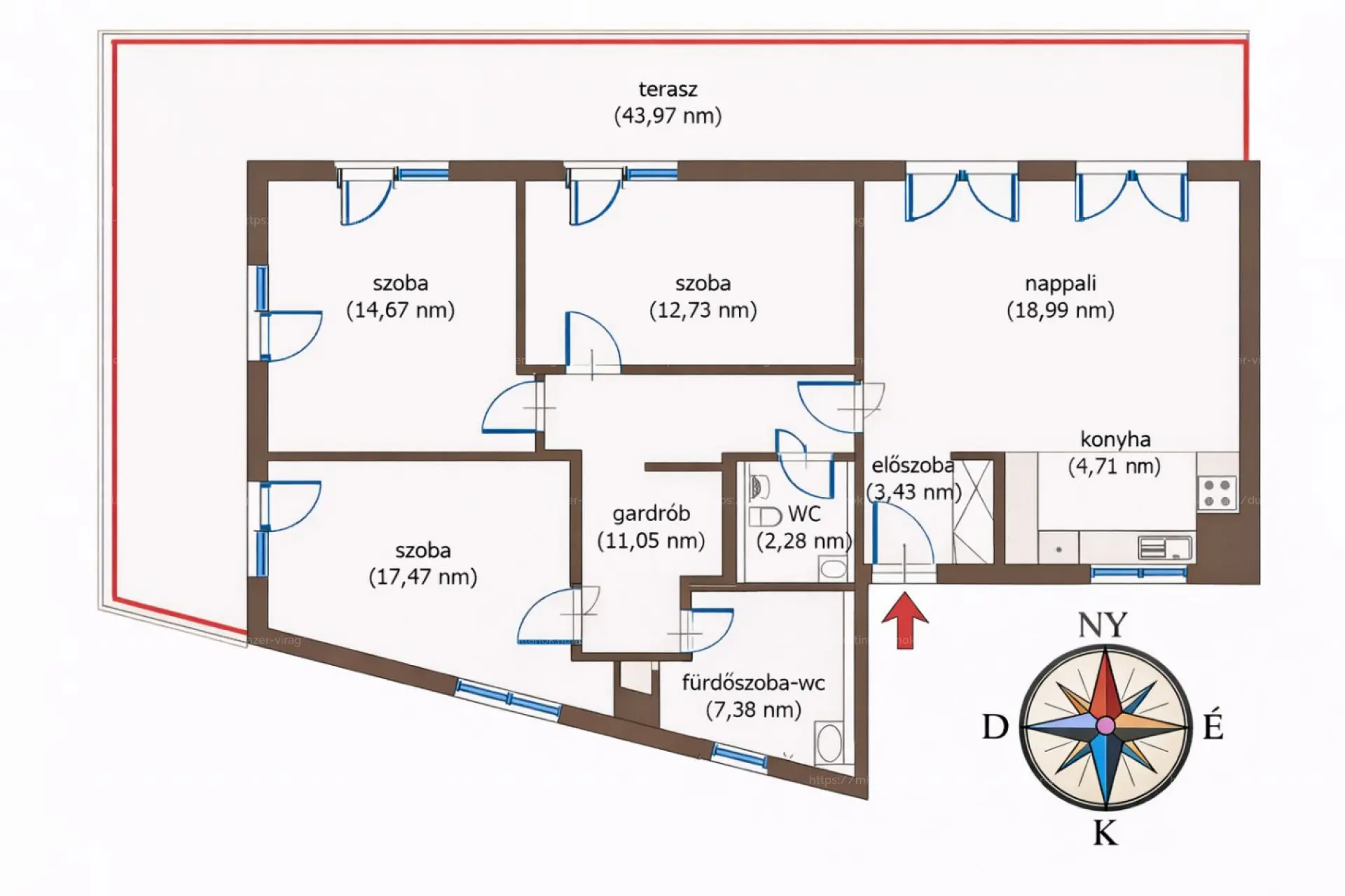 A lakás világos, tágas terekkel és kiváló elosztással rendelkezik, ideális nagyobb családnak, igényes pároknak vagy exkluzív befektetésnek.