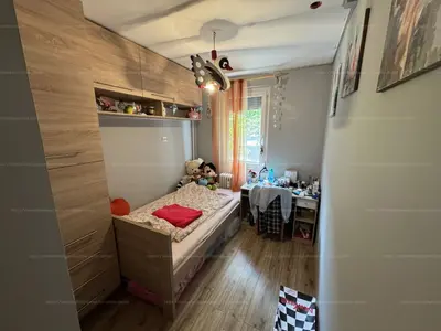 59 m2-es, panel építésű. Óriási előnye, hogy a belső elrendezést úgy alakították át, hogy 3 hálószoba áll rendelkezésre. Ebben a formában 2 gyermekes családnak is kényelmes a lakás.