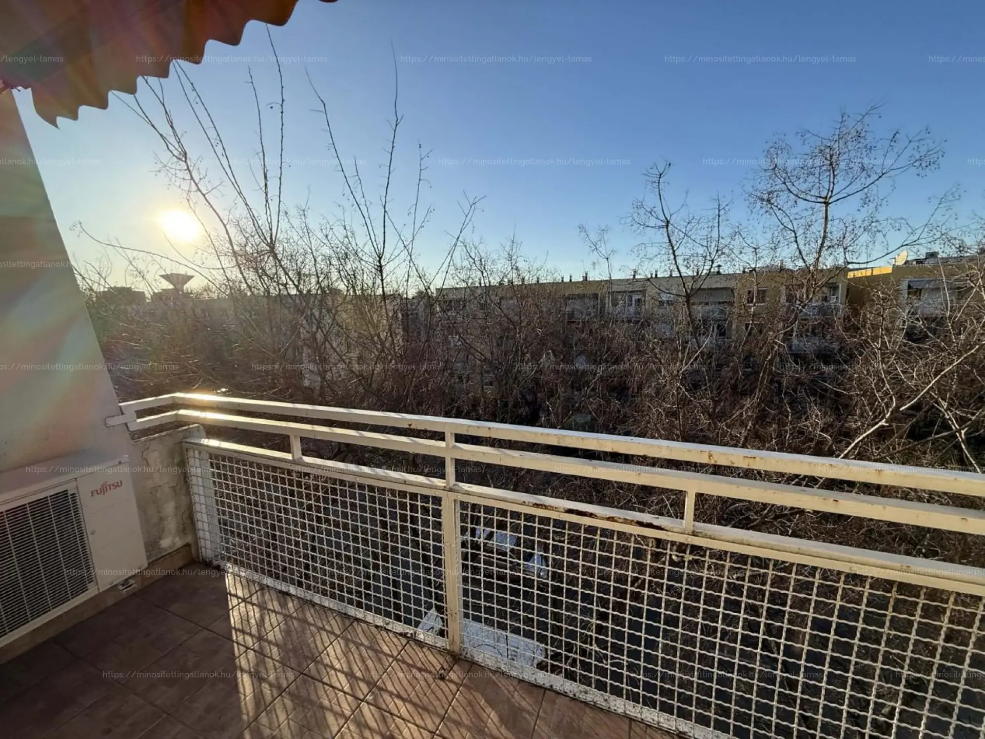Az erkély fedése napellenző rolóval megoldott, így kellemes pihenőhelyet biztosít a melegebb hónapokban is.