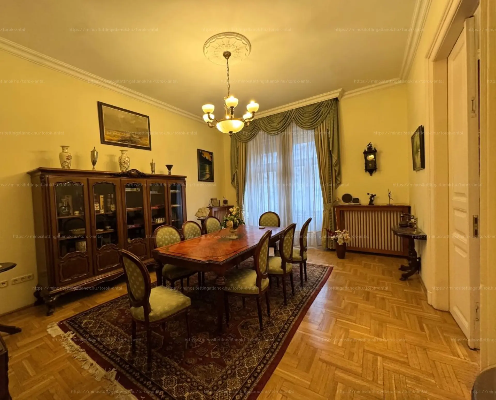 Az ingatlan műszaki állaga kifogástalan. A nagy belmagasságú lakásban, a belső ajtók, még a régi, de gondosan karbantartott, mázolt ajtók, szobák között ketté nyíló szárnnyal, nagyon szép állapotban.