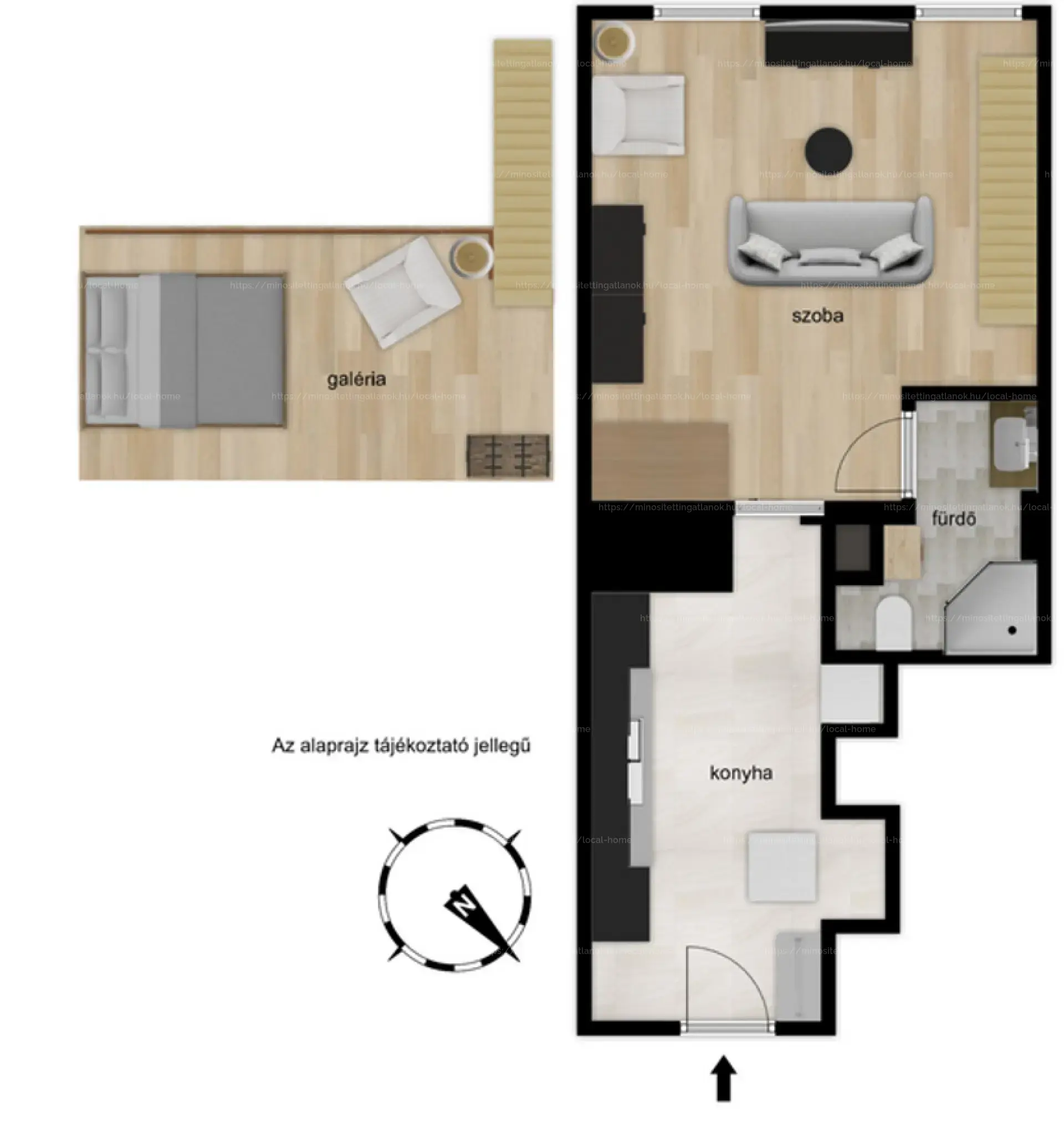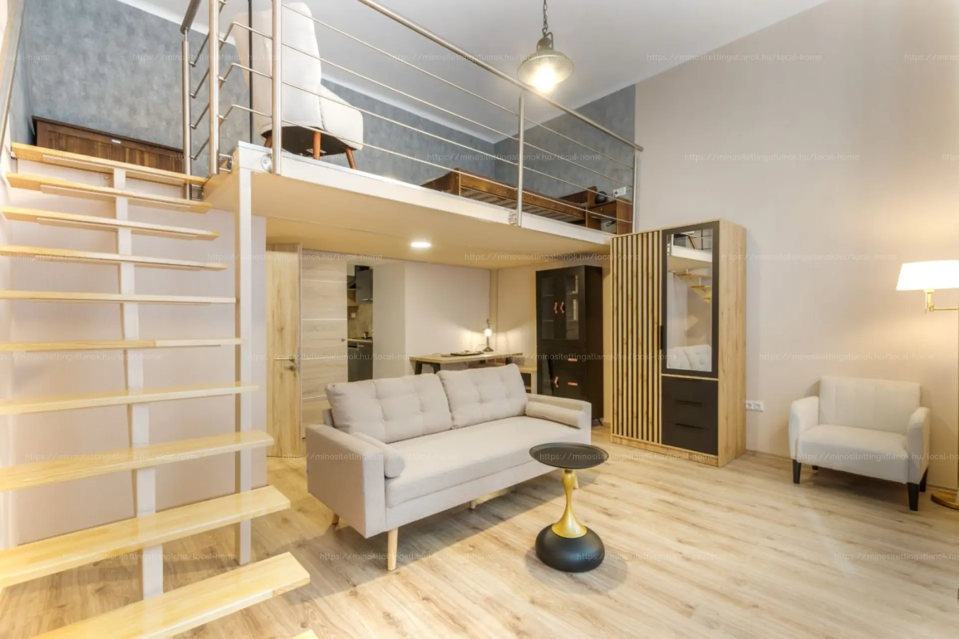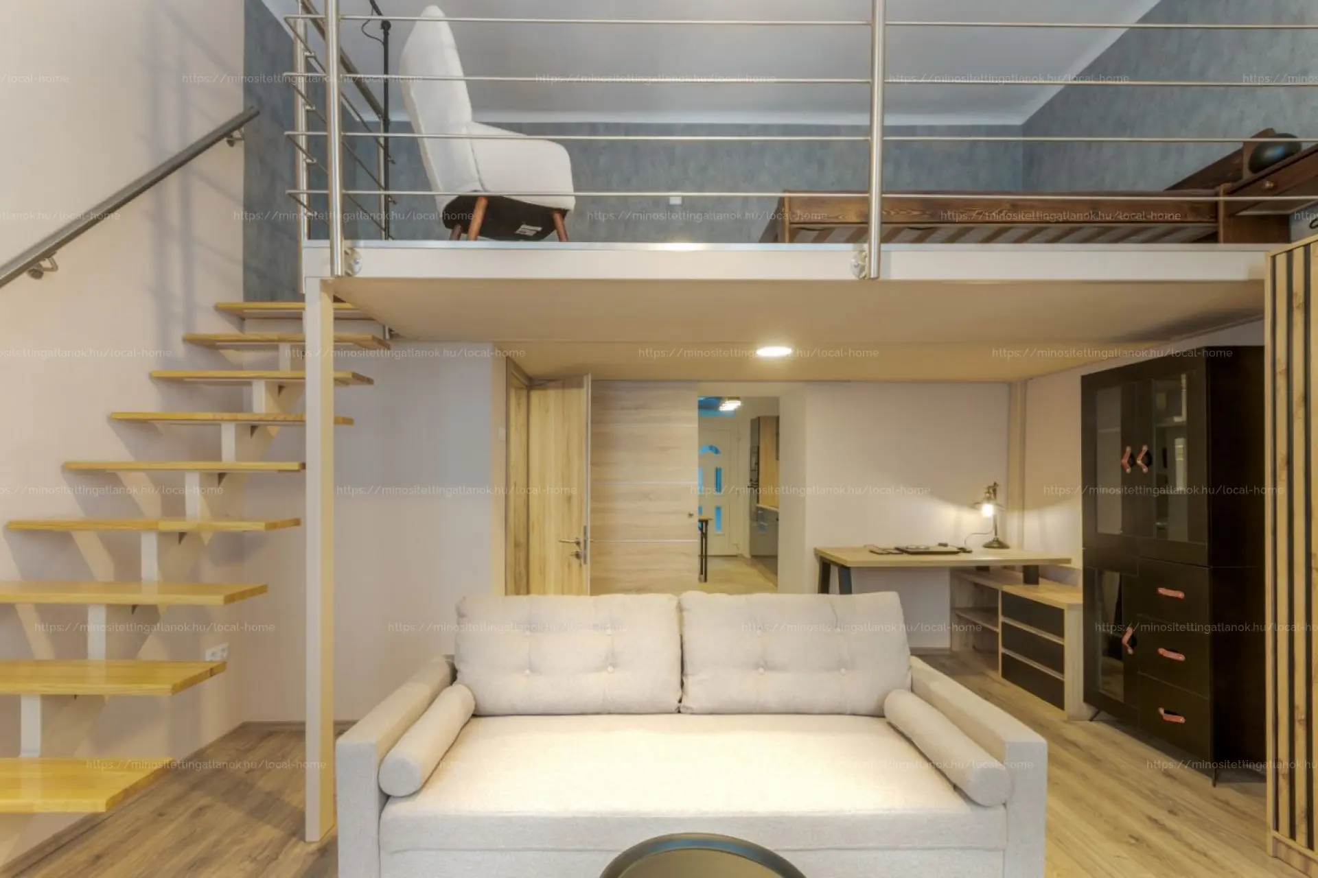 Magasföldszinten található, magas belmagasságának köszönhetően kényelmes galéria került kialakításra, ezáltal a nappali nagyon tágas és élvezhető.