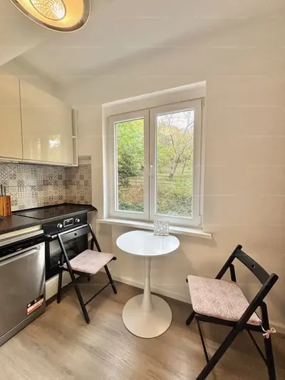 A lakás teljesen bútorozott, felszerelt, felújított, s légkondicionáló berendezéssel ellátott ingatlan. A lakás Buda egyik nyugodt utcájában található, pár perces sétatávolságra a Mechwart Ligettől, Széll Kálmán tértől és a Mammuttól. Az ingatlan részei a két szoba, konyha, fürdőszoba, mellékhelyiség és két erkély.