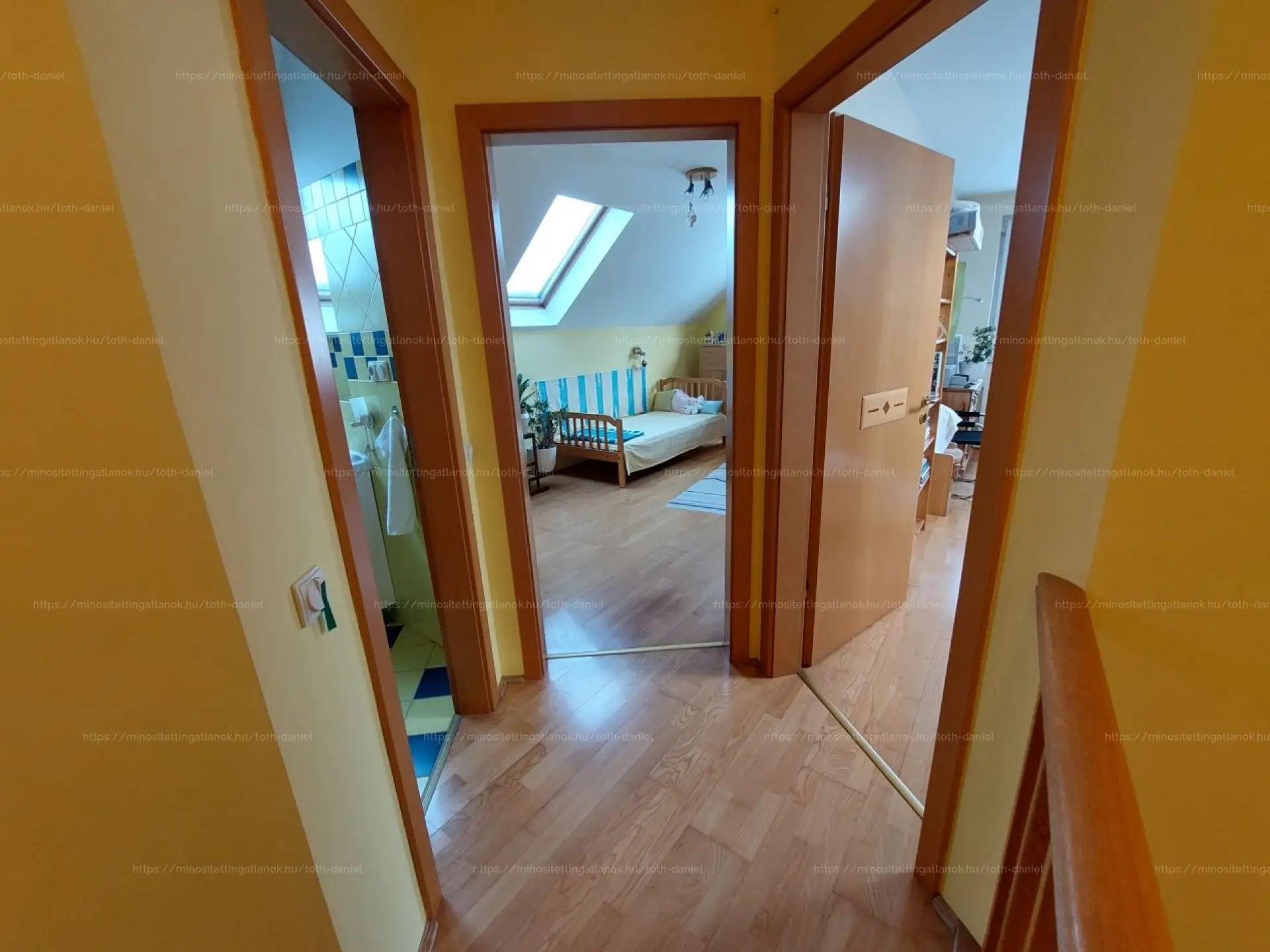 Az emeleten két tágas, világos hálószoba és egy esztétikus, igényesen kialakított fürdőszoba található.