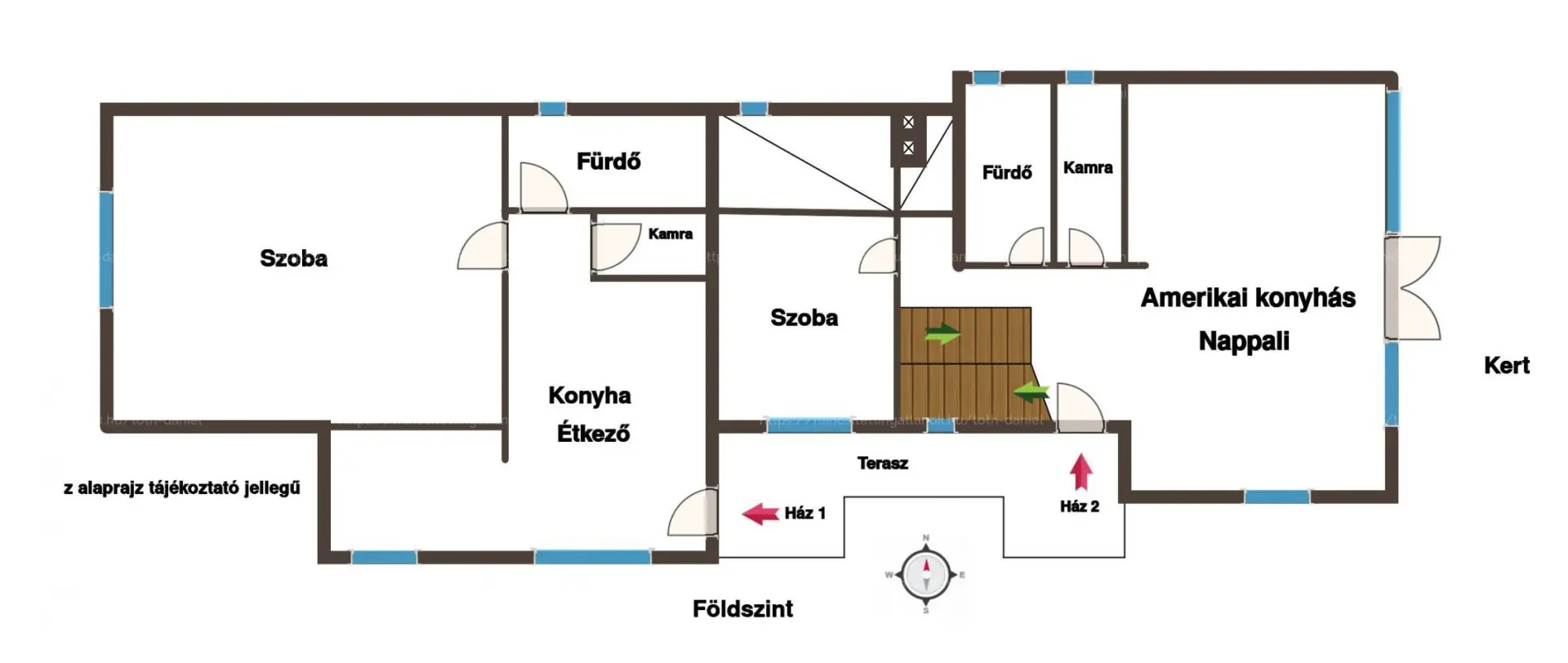 Az ingatlan két külön bejáratú, önálló lakrészből áll, amelyek funkcionálisan és közműveik tekintetében is elkülönülnek.