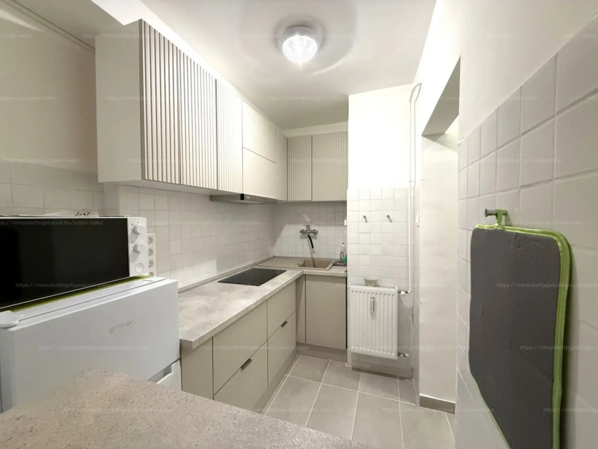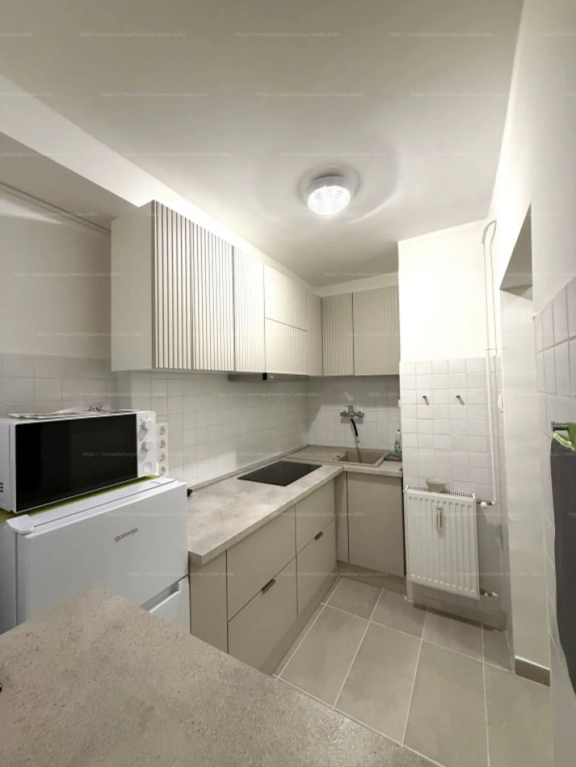 Kiadásra kínálok egy felújított, bútorozott, gépesített 28 m2 alapterületű egy szobás társasházi lakást. A ház tégla építésű, kis lakóközösségű elő és saját belső zöld zárt kerttel. A szoba előkertre, utcára néző, franciaággyal, szekrénysorral. A konyha konyhabútorral, indukciós főzőlappal, hűtővel, mikrohullámú sütővel felszerelt. A fürdőszoba mosdóval, káddal, mosógéppel felszerelt, a toalettel egy helységben kapott helyet. A közlekedőben egy beépített polcos szekrény került. A lakáshoz tartozik egy közös tároló. A házban egy közös használatú belső zöld kert van. A lakás teljeskörű felújításon esett át, új villamos hálózat, vízvezetékek, szaniterek kerültek beszerelésre, új burkolatot kapott, műanyag hangszigetelt ablakok kerültek beszerelésre redőnnyel, acél biztonsági ajtóval. Az otthon melegéről egyedi méréssel házközponti fűtés gondoskodik, a meleg víz villany bojlerrel megoldott. A lakás szekrénysorral, francia ággyal, éjjeli és tároló szekrényekkel bútorozott, mosógéppel, hűtővel, mikrohullámú sütővel gépesített. A közös költség : 14.000 Ft.