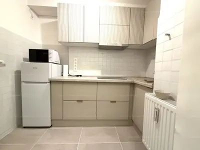 Kiadásra kínálok egy felújított, bútorozott, gépesített 28 m2 alapterületű egy szobás társasházi lakást. A ház tégla építésű, kis lakóközösségű elő és saját belső zöld zárt kerttel. A szoba előkertre, utcára néző, franciaággyal, szekrénysorral. A konyha konyhabútorral, indukciós főzőlappal, hűtővel, mikrohullámú sütővel felszerelt. A fürdőszoba mosdóval, káddal, mosógéppel felszerelt, a toalettel egy helységben kapott helyet. A közlekedőben egy beépített polcos szekrény került. A lakáshoz tartozik egy közös tároló. A házban egy közös használatú belső zöld kert van. A lakás teljeskörű felújításon esett át, új villamos hálózat, vízvezetékek, szaniterek kerültek beszerelésre, új burkolatot kapott, műanyag hangszigetelt ablakok kerültek beszerelésre redőnnyel, acél biztonsági ajtóval. Az otthon melegéről egyedi méréssel házközponti fűtés gondoskodik, a meleg víz villany bojlerrel megoldott. A lakás szekrénysorral, francia ággyal, éjjeli és tároló szekrényekkel bútorozott, mosógéppel, hűtővel, mikrohullámú sütővel gépesített. A közös költség : 14.000 Ft.