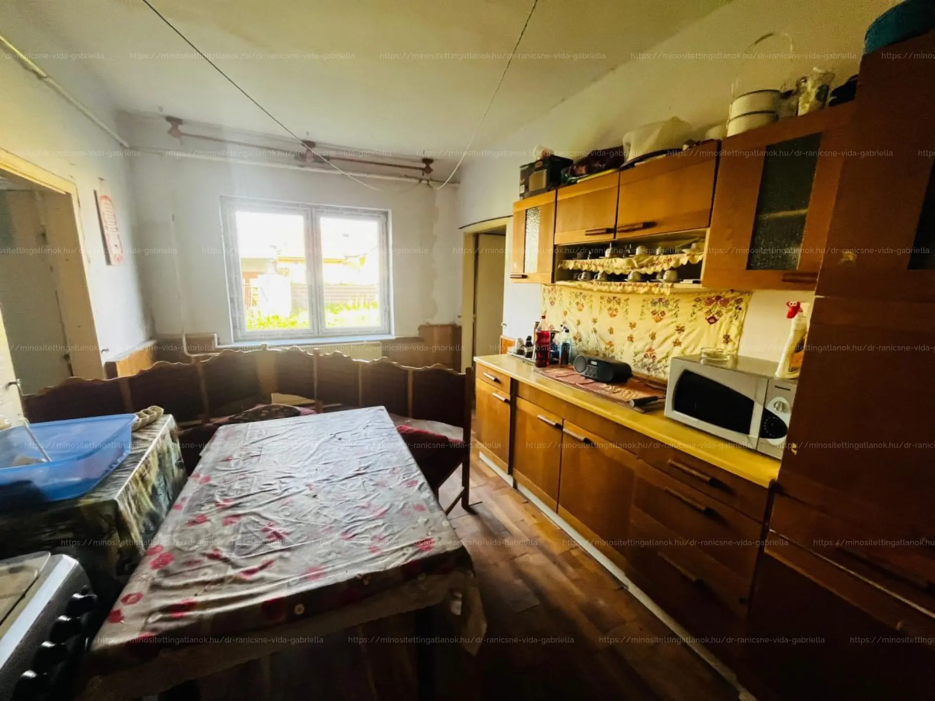 - Ajtok és ablakok: PVC (fürdőszoba, konyha, kamra és 1 szoba), a többi helyiségben pedig fa