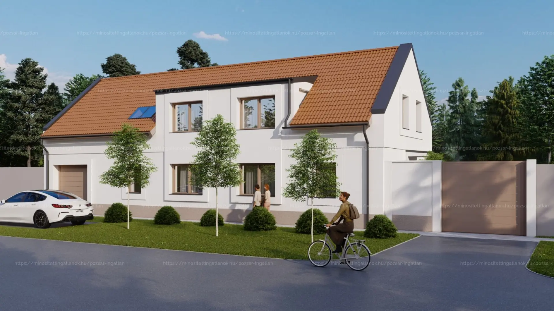 A fő falak 30 CM VASTAG POROTHERM TÉGLÁBÓL épülnek, kívülről vastag EPS hőszigeteléssel, amelyhez díszítő keretezések és MODERN MEGJELENÉSŰ HOMLOKZATI KIALAKÍTÁS társul.