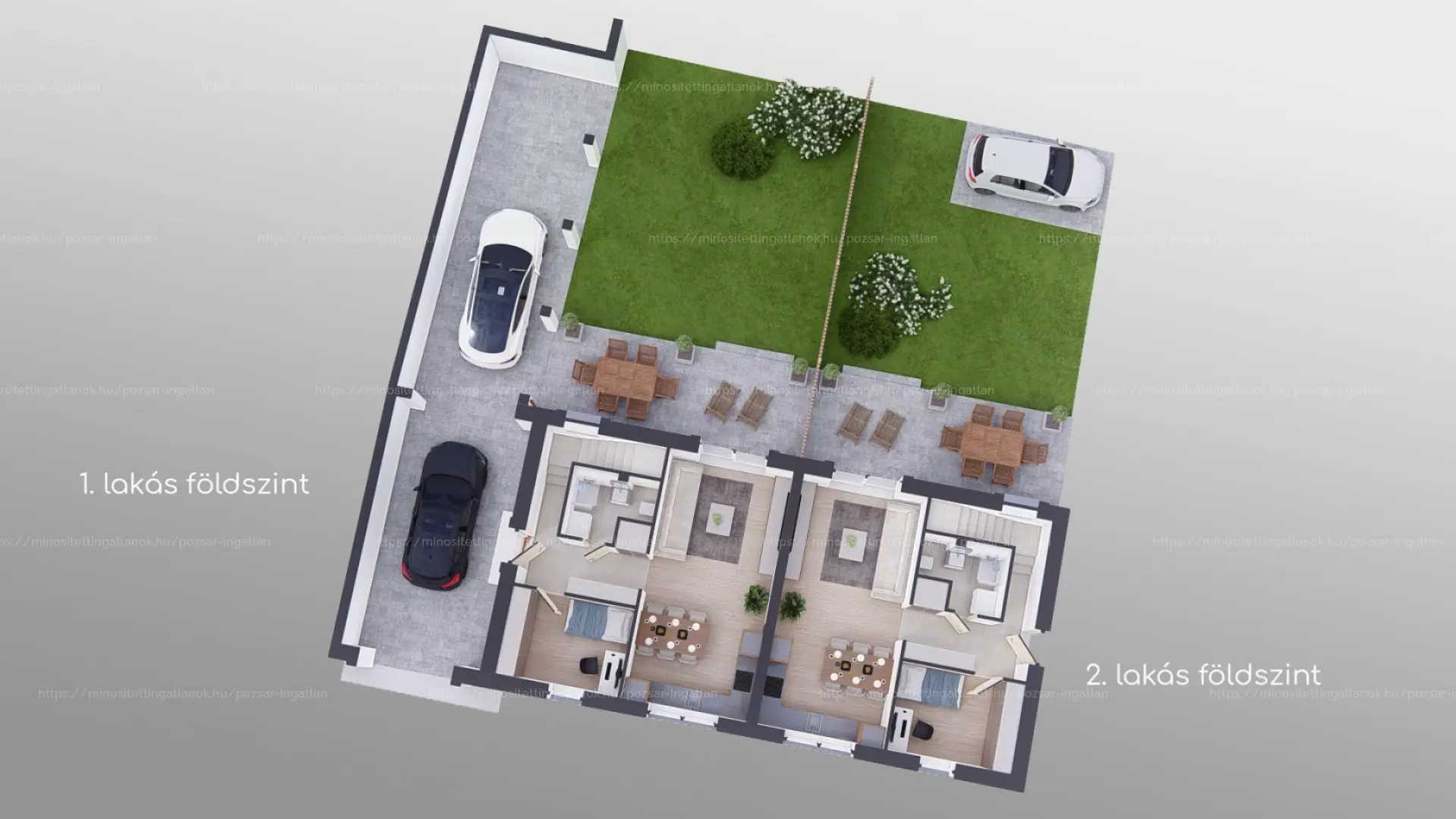 A jelenleg épülő társasház 1-es és 2-es számú lakása ELADÓ, amelyek külön-külön 89 NM-ESek.