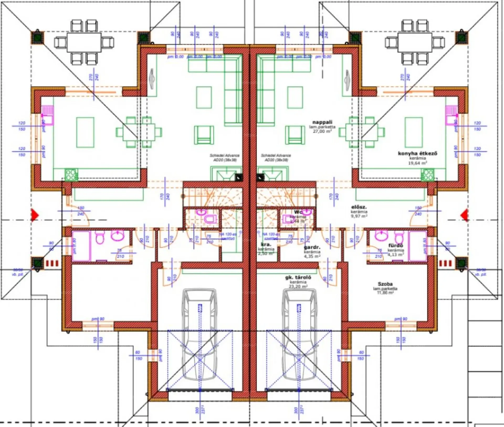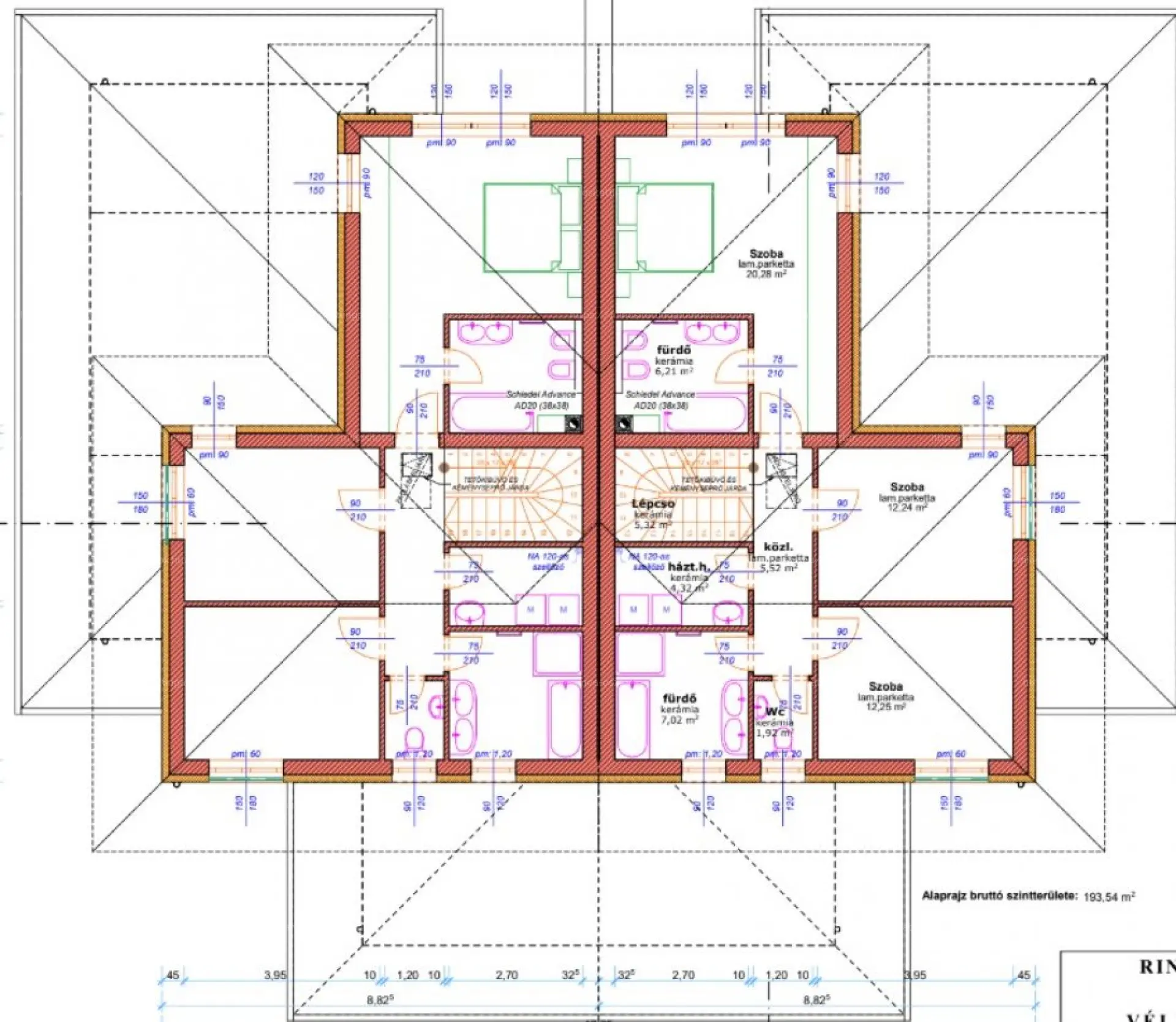 Nettó 242.66 nm /értékesítési alaprajz szerint 243.54nm/, nappali + 5 szoba, 3 fürdőszoba, kétállásos garázs