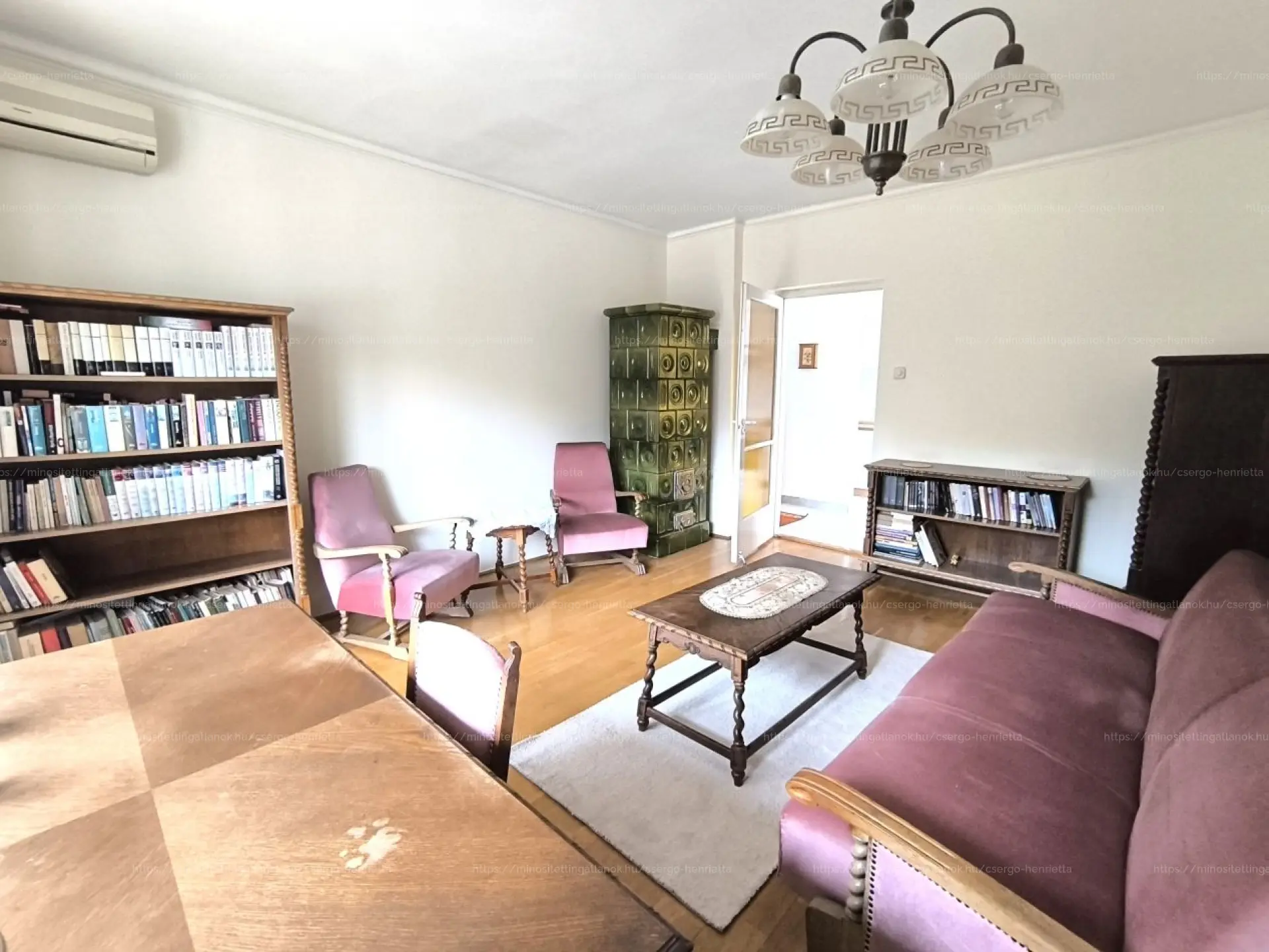 A nappaliban hűtő-fűtő klíma gondoskodik a komfortérzetről, emellett egy működő cserépkályha is található, amely nemcsak praktikus, hanem hangulatos is.