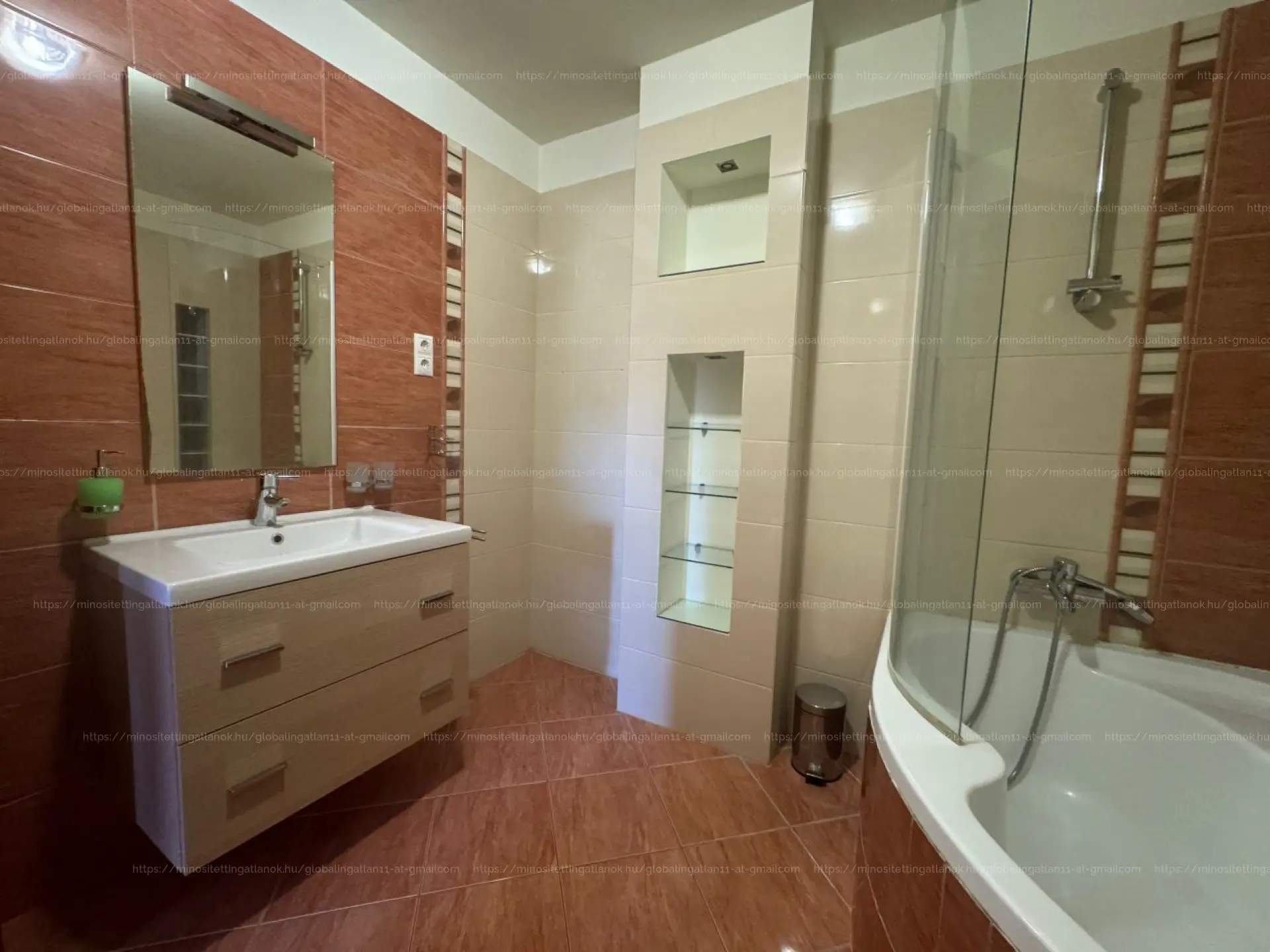 A fürdőszoba kádas kialakítású, a WC bidével külön helyiségben található.