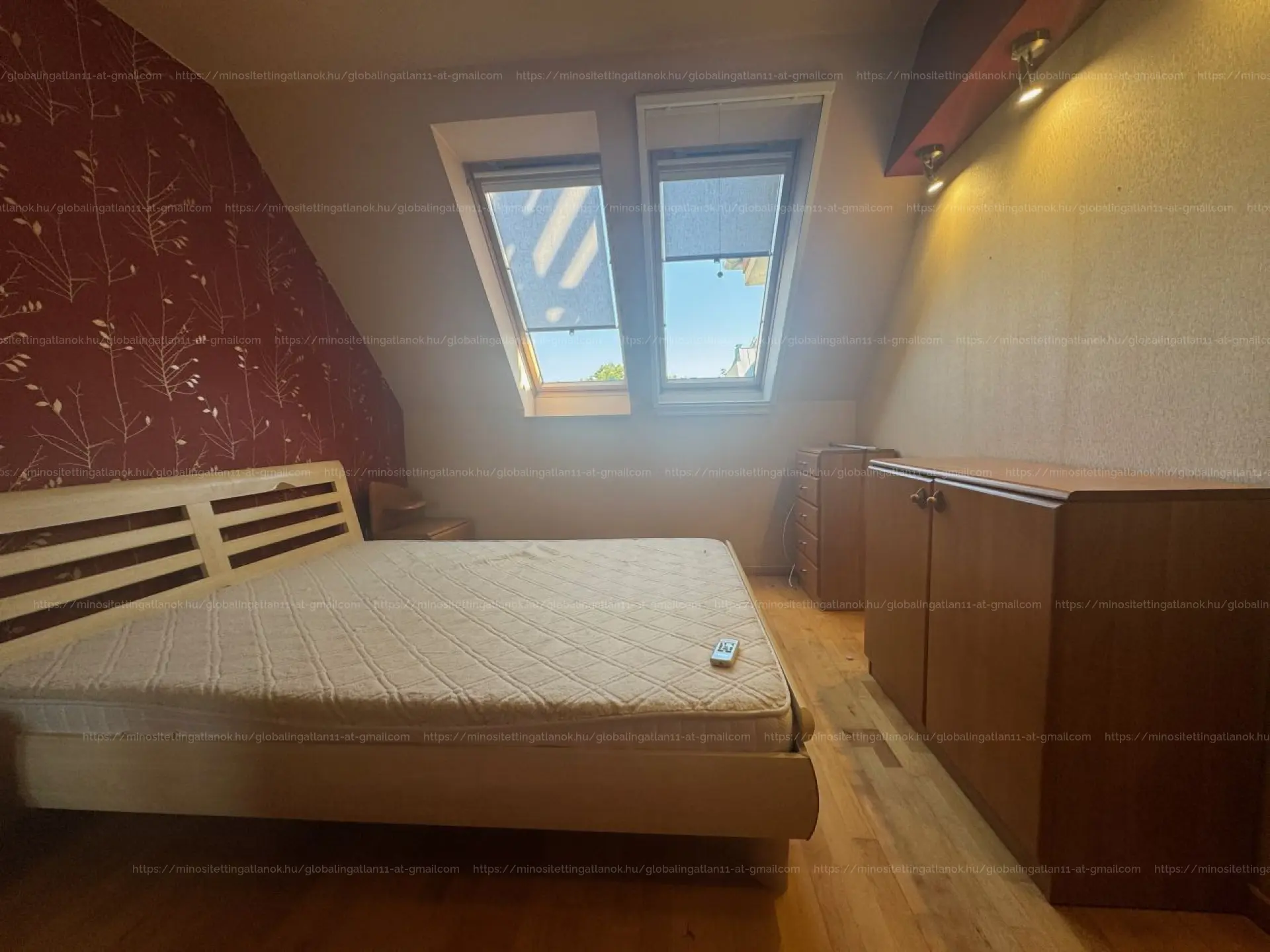 Az ingatlan alábbi helyiségekre osztott: tágas AMERIKAI KONYHÁS nappali; kettő fél szoba (12 és 13 m2, féltetőtéri kialakítás).