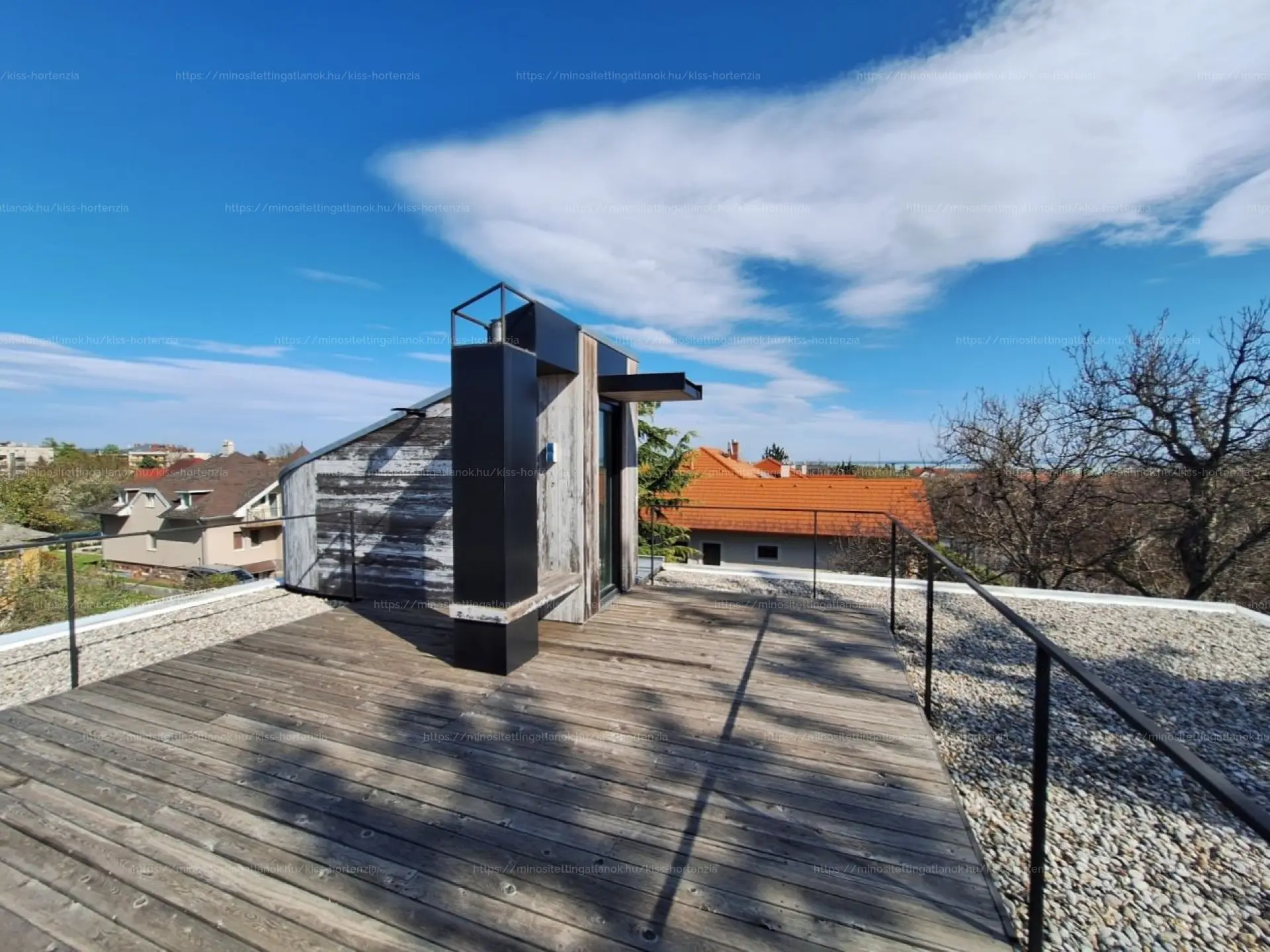 A ház különlegessége a mesés panorámájú tetőterasz, ahol a Balaton látványa teszi tökéletessé a reggeli kávét vagy az esti borozást… 🌅🍷