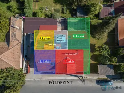 • 2.lakás: 31,05 m2, 2 szoba, konyha, fürdő.
